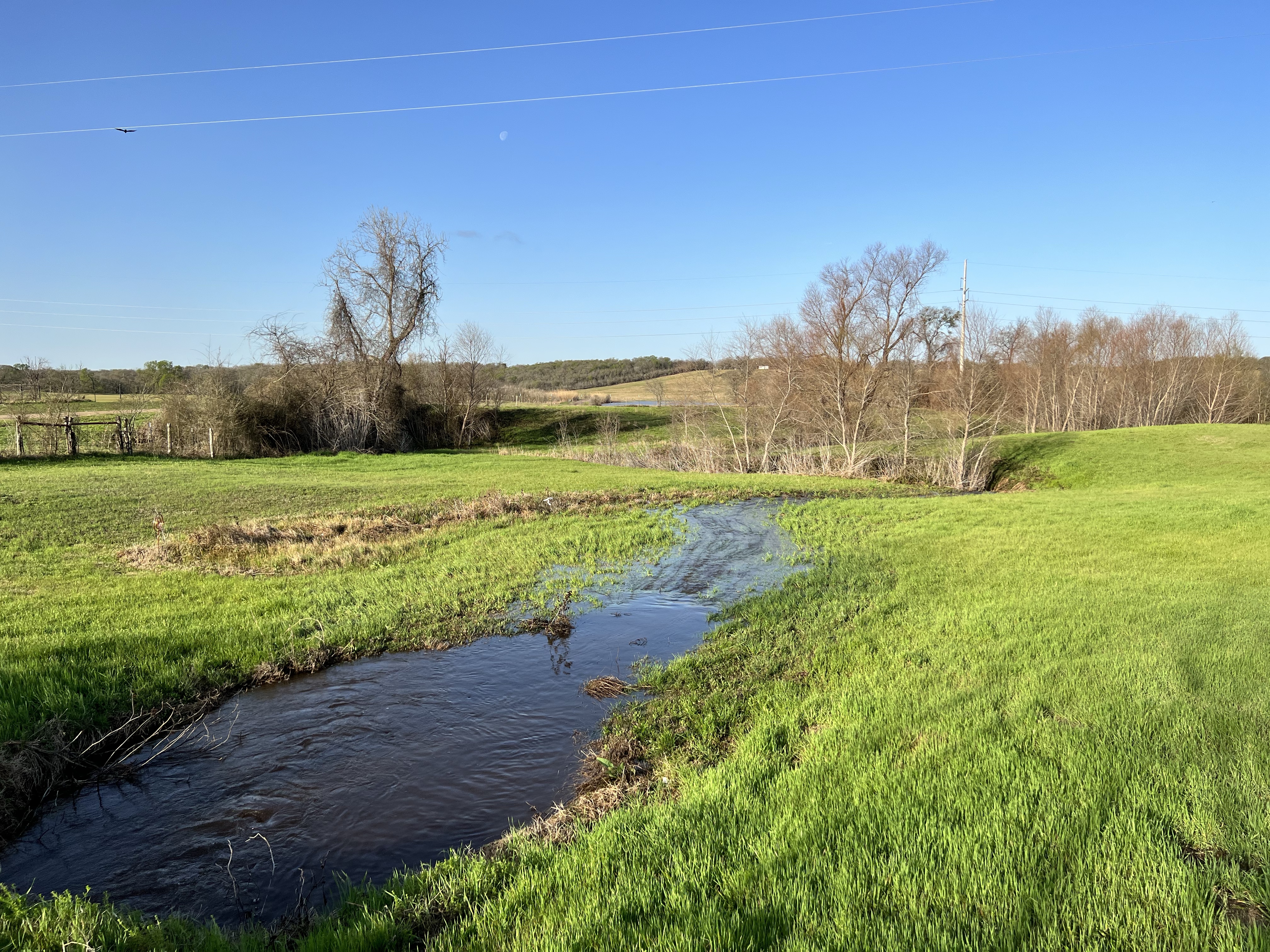 But after we went to bed, yet another round of storms came and that’s when we got the rain…close to three inches, which we truly needed. Now all the ponds are full, and Walker’s Creek can once again be seen from the house as it does its best to pretend to be a temporary river.