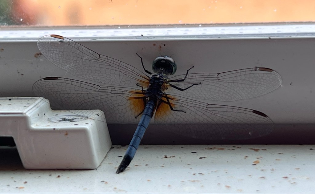 One glimmer today came when I finished cleaning the tack room and was chatting with my son (a larger pleasure) and I looked in the window to see a sparkling dragonfly. It pleased me so much! (It’s outside now.)