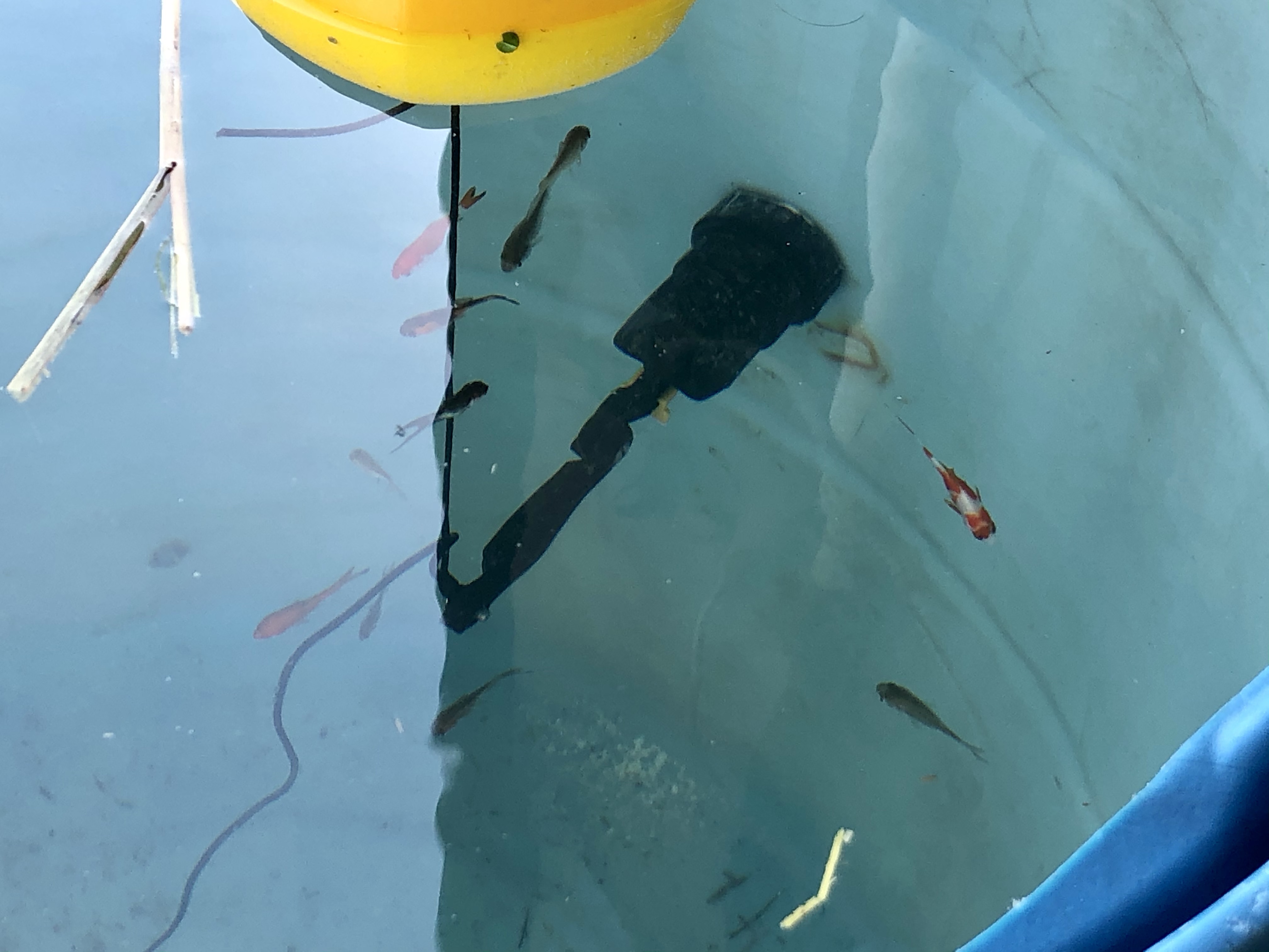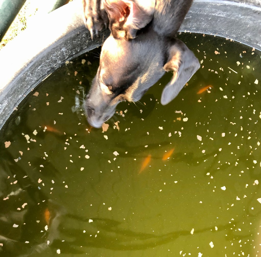 That was NOT very smart of us humans, but Mabel had more on her, and she wasn’t about to let us wipe her mouth. Luckily feeder goldfish are quite inexpensive. And I do still have one trough with big fish in it.