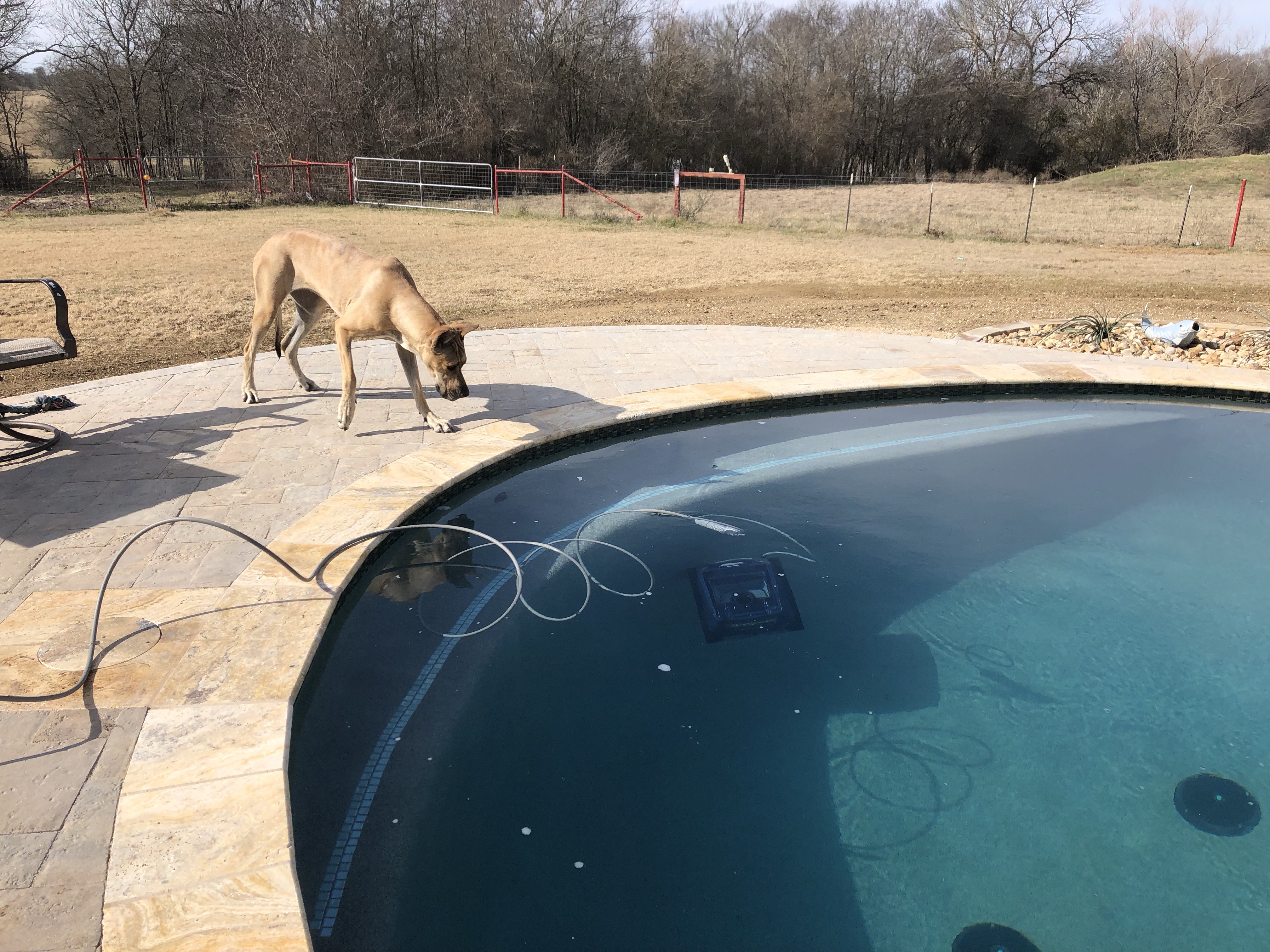 It doesn’t appear that anyone else has joined Droodles in the horse swimming pool, but I sure was happy to watch him cruising around and having a great time.