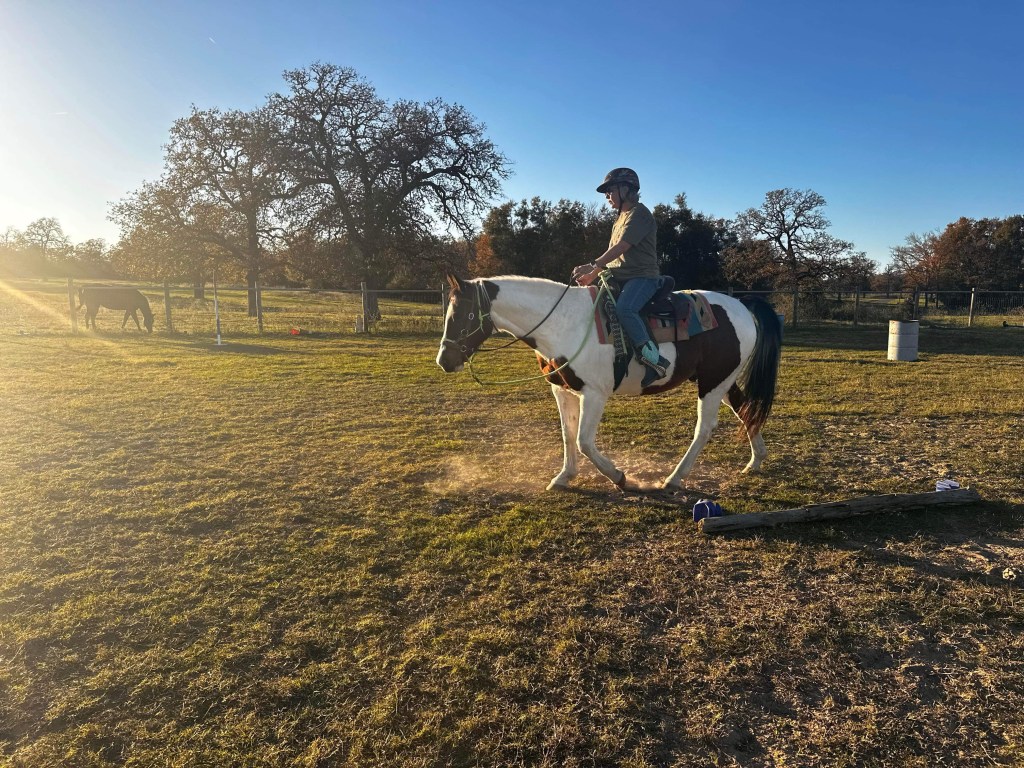- After work, feed horses, groom a horse, or work with Apache.