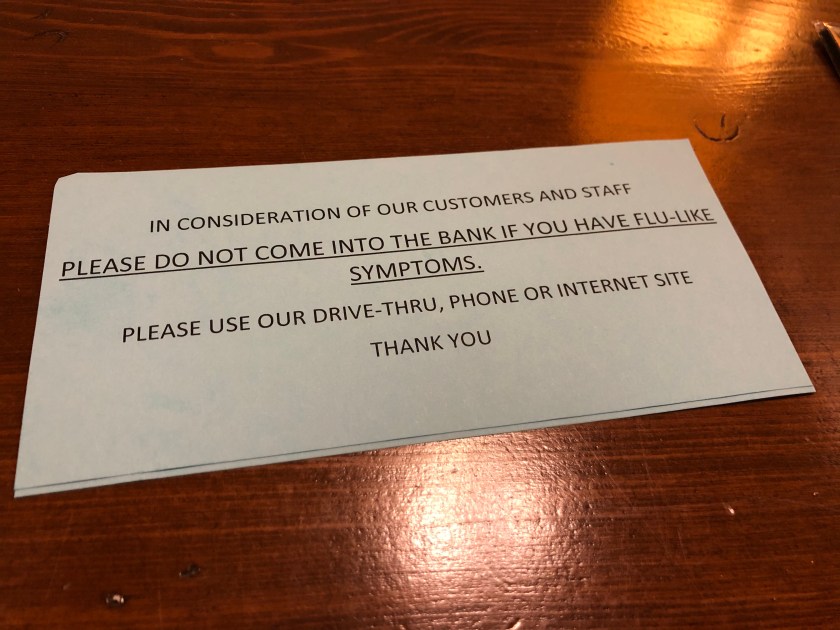 There are a couple of small town signs that I enjoyed yesterday, too. One was put out by the local bank. It’s so smart of them! And still, it has small-town charm. I edited it to say “office” and deleted “drive-thru” and hung it on our office door.