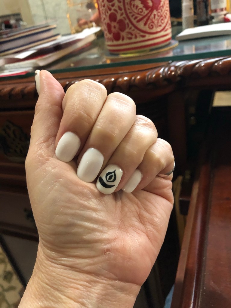 And the last thing is I got my nails done and honored Imbolc, my favorite time of the Celtic calendar. I put Brighid’s sacred flame on them. That will make me smile for the next couple of weeks. It wasn’t easy for Tina to do this, so I appreciate the effort, even if I’m the only one who really knows what it’s about.