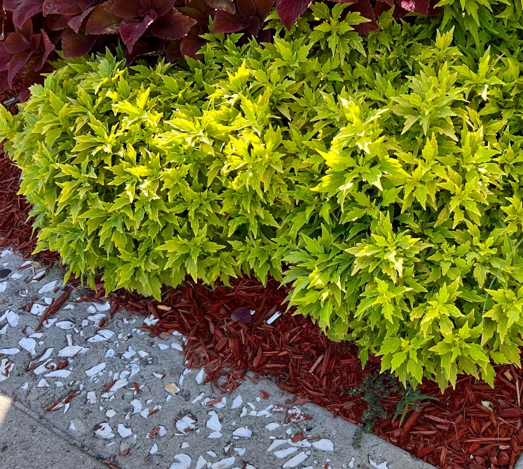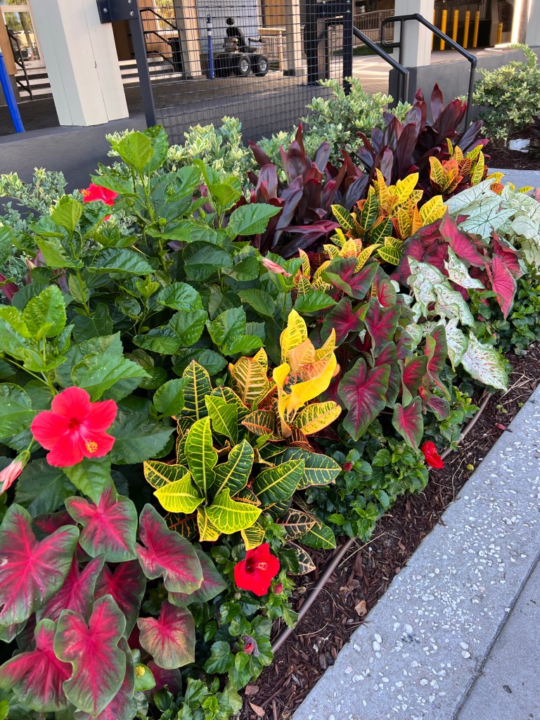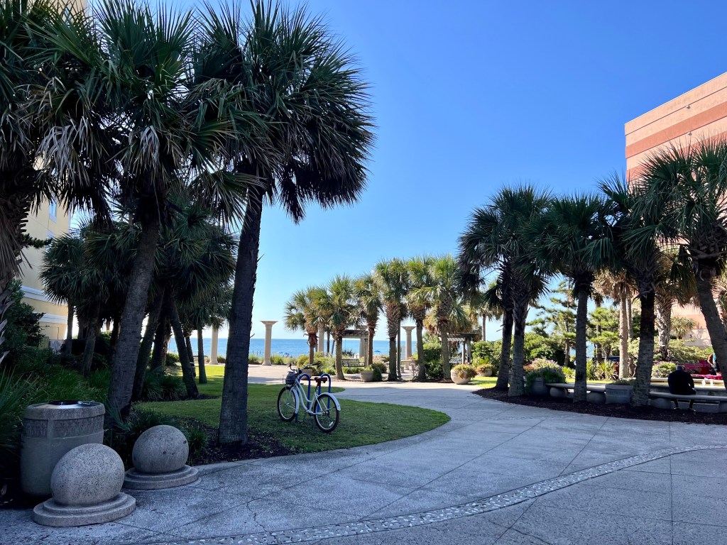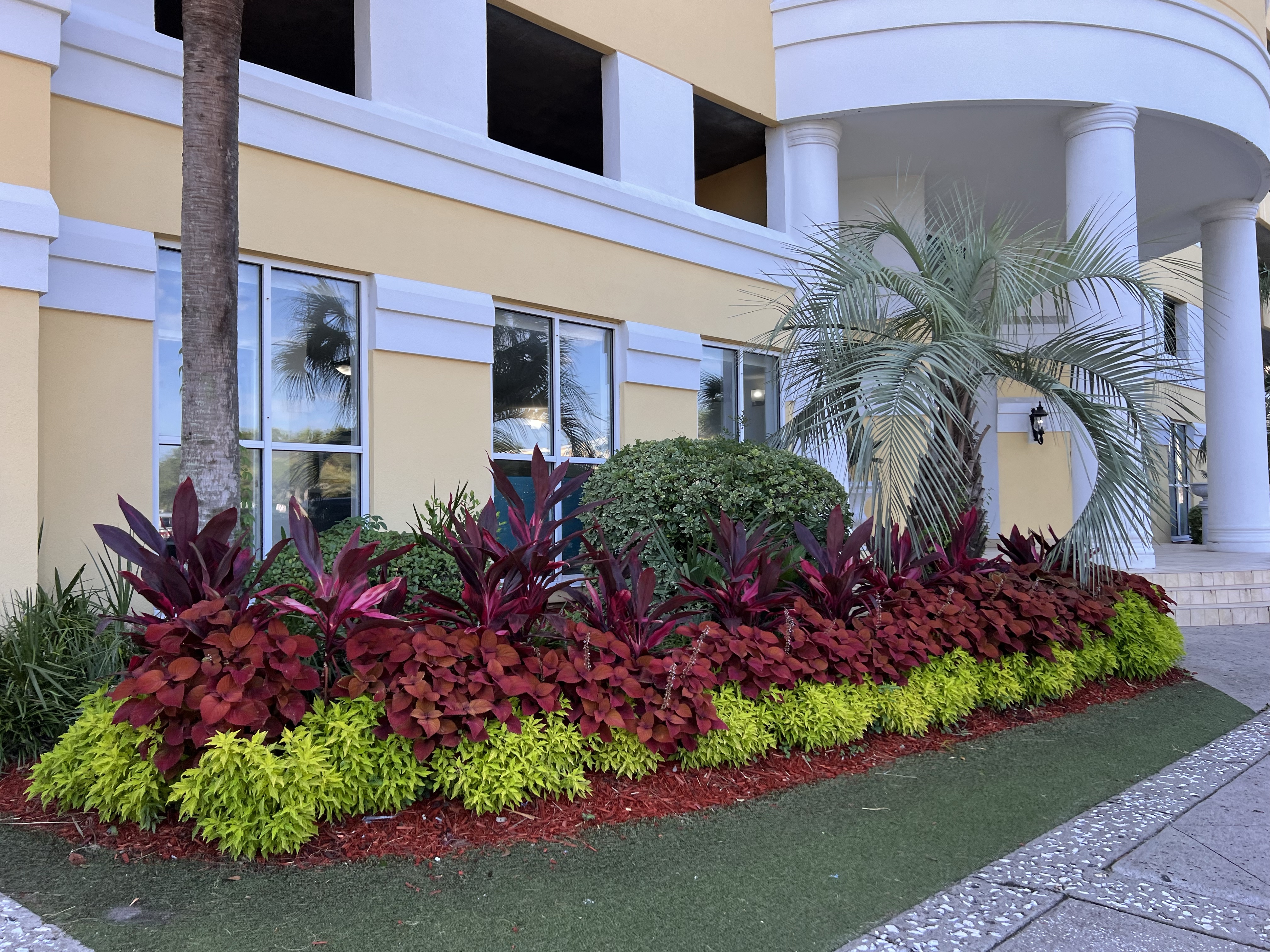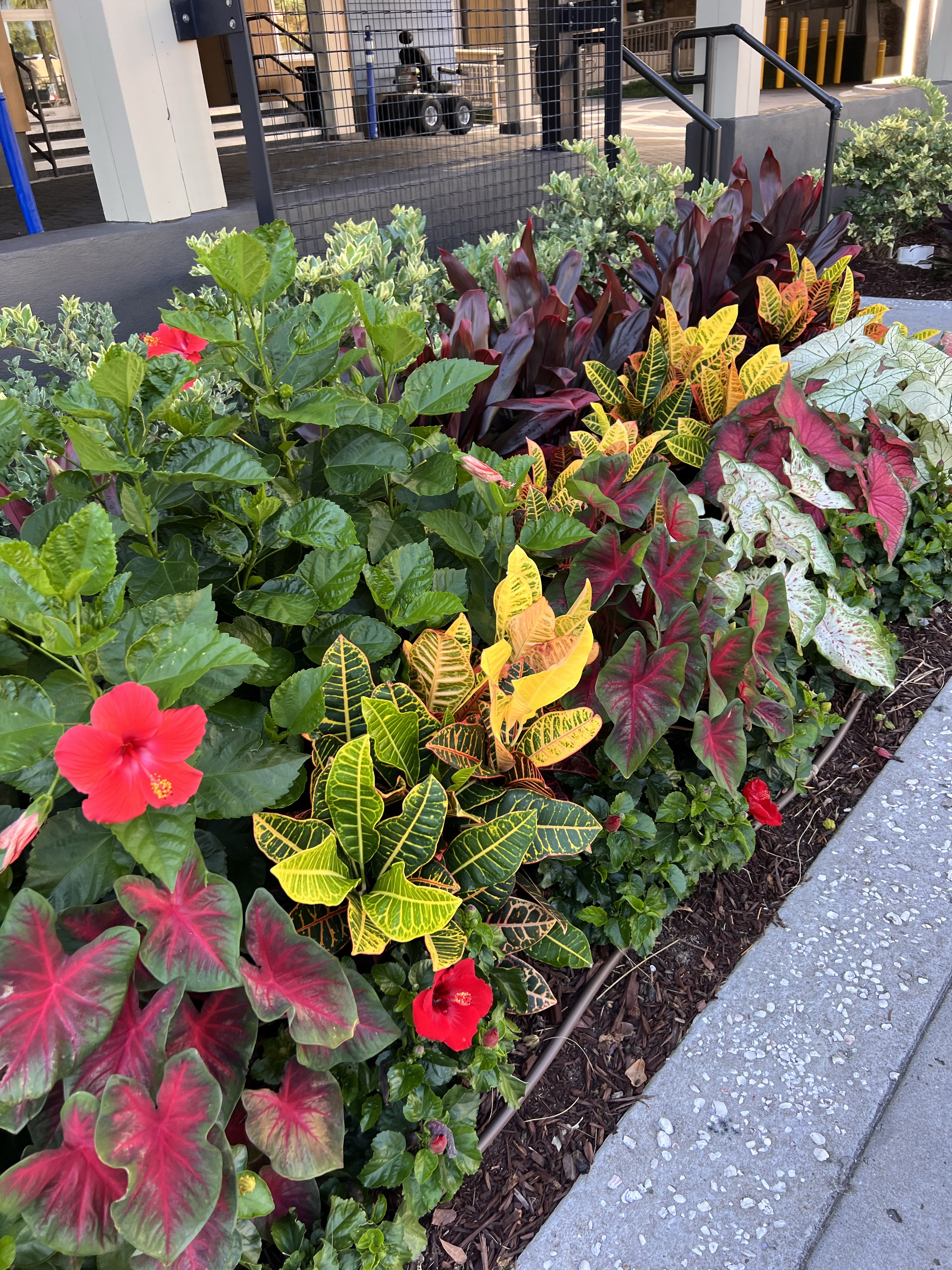 It’s nice on this end of Ocean Blvd. A pretty beachside parkSome hotels have nice landscaping Very tropical (hibiscus, croton, caladium, etc.)I like the edging with oyster shells in the concreteOur building is at right. The empty lot had excellent weeds. Condo Land