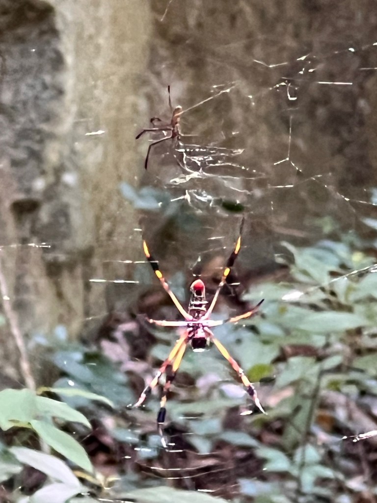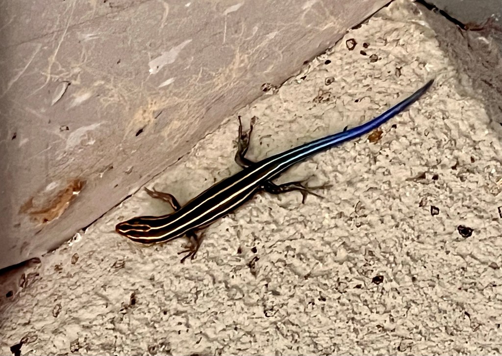 Golden silk spider coupleLook at those legsA smaller oneToothed Skink. Not sure what kind. Perhaps a bar-winged skimmerBeautiful great blue skimmer