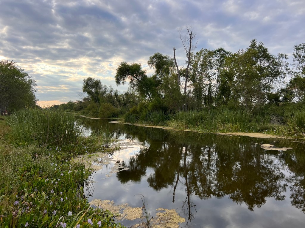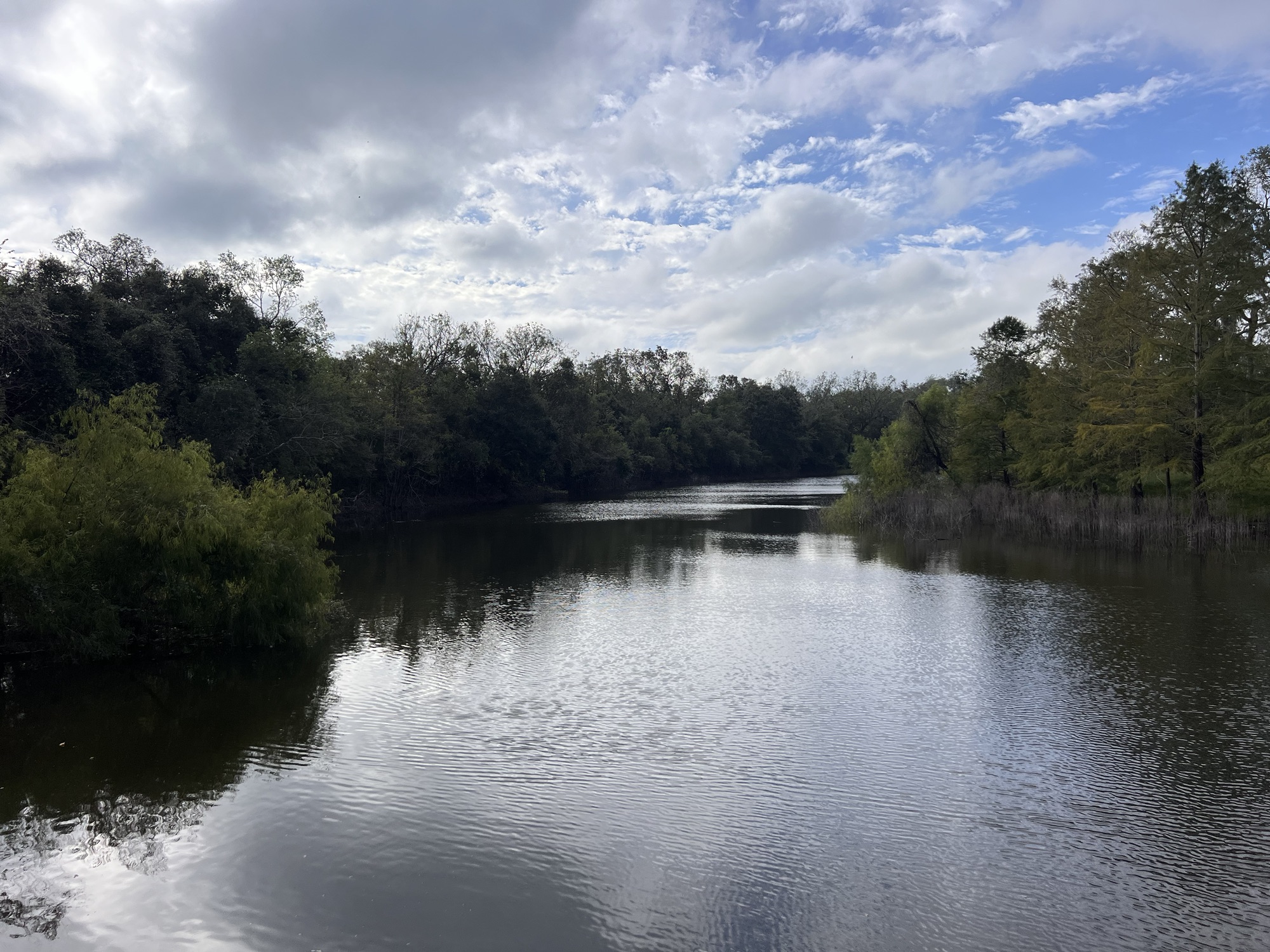 Here at Brazos Bend State Park, I investigated some of the bends, horseshoe lakes created by creeks and rivers when they change course. This morning I crossed Big Creek to check out Hale Lake, which has a cool path that loops inside the horseshoe. The paths aren’t very well maintained, but there have been so many hurricanes and such lately that aesthetics may not be a priority. The ancient benches and gazebos still work.