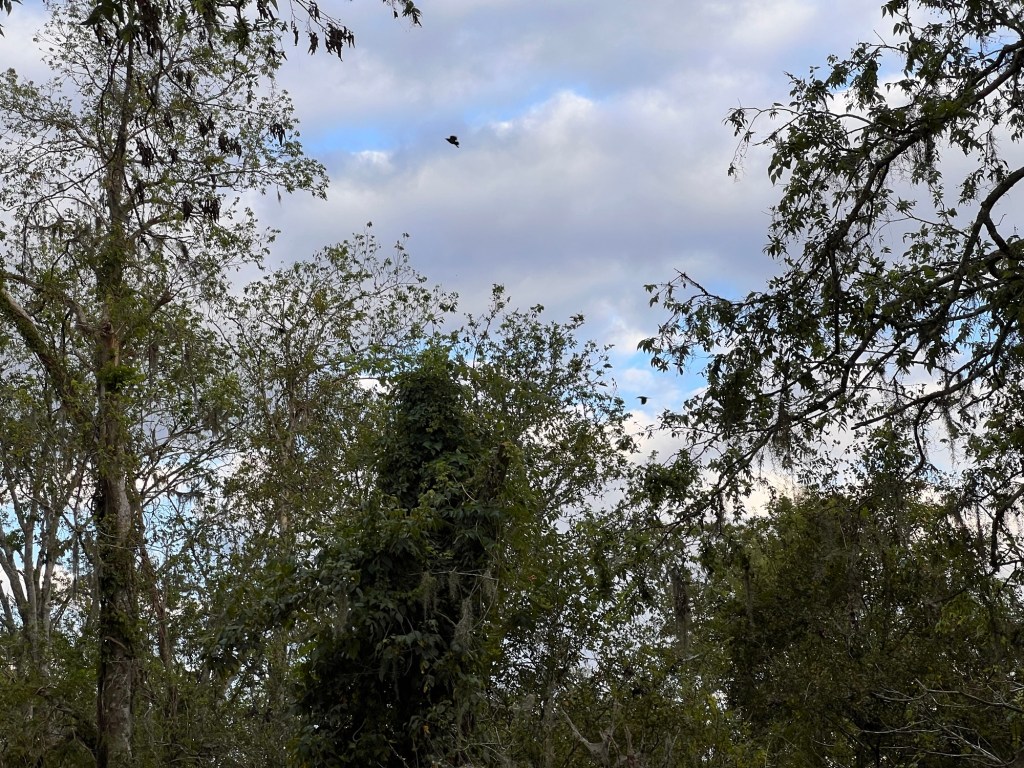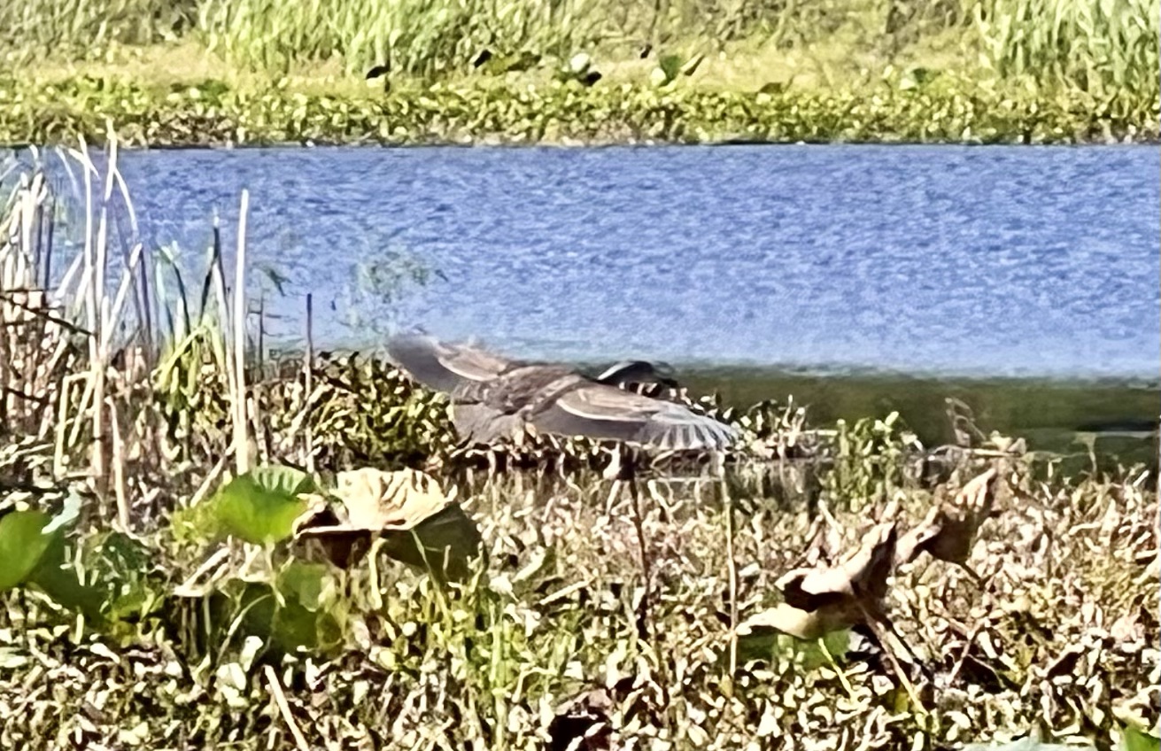 In addition to more Anhingas, Yellow-crowned Night Herons, herons, and egrets, I had a real-life Tippi Hedren moment. I heard noises in the swamp, which got louder and louder. I realized it was a huge flock of grackles making its way toward the lake. They were sneaky, not flying together in a murmuration, but going slowly from tree to tree until they were above me. Eek.