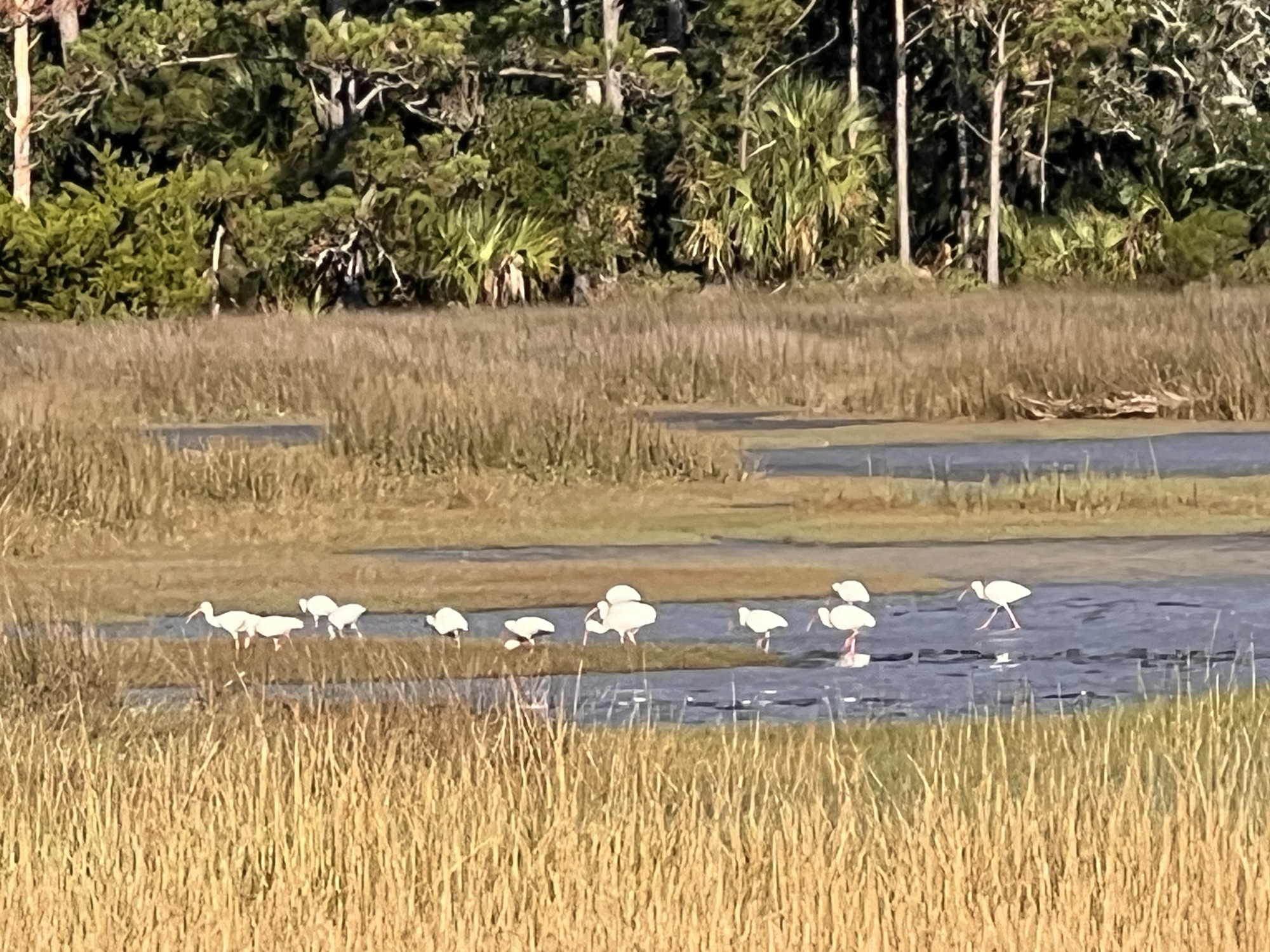 After work there was still some light, thanks to starting at 7 am, so we zipped over to a favorite spot, Pinckney Island Nature Preserve. I didn’t make Lee wait hours for me like I did last time we were here. He had more fun this time, since he got to mess with the camera a lot while I basked in the glory of looking at wading birds with my new binoculars. Oh, the glory of ibises and egrets!