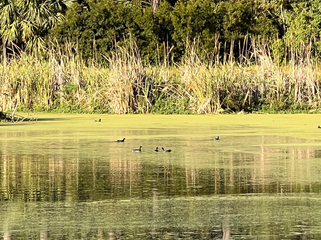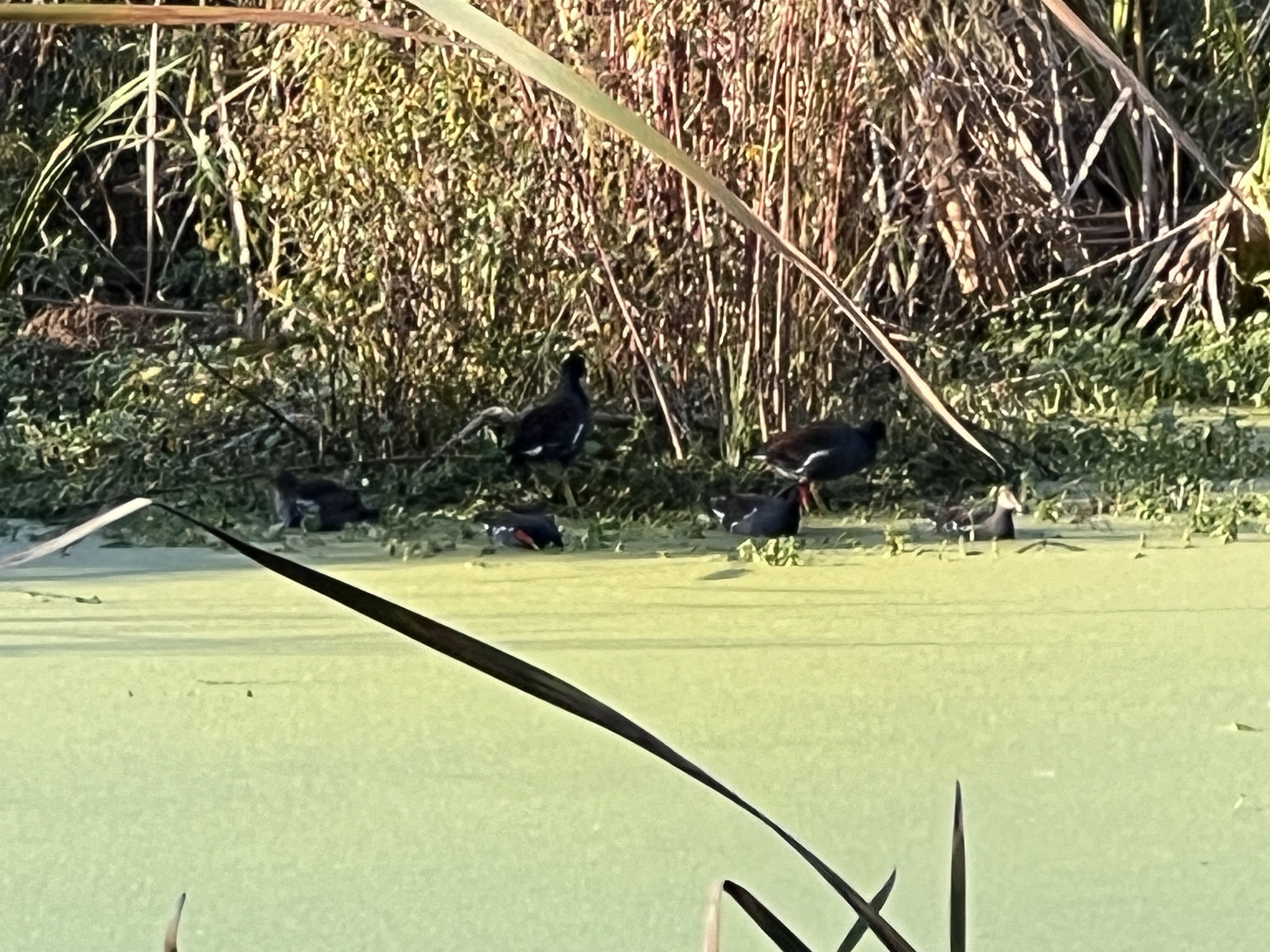 The Ibis pond is one of my favorite spots in this area, and it didn’t disappoint. It was loud, though. The gallinules were making a real racket, with a variety of calls, squeaks, and hoots. I barely heard any of the other water birds. But they were all fun to watch, since there were many family groups.