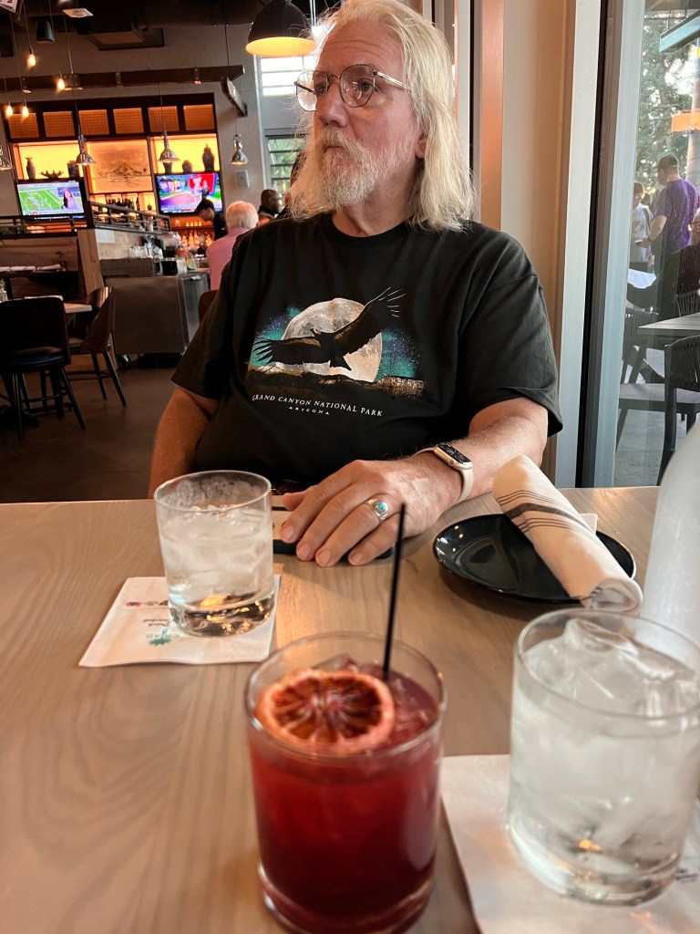 And I had a great dinner at a new restaurant in town that is in a beautiful spot. Lee isn’t fond of food or portions in nice restaurants, but my halibut was perfect, and my fancy drink was tasty and not too sweet.