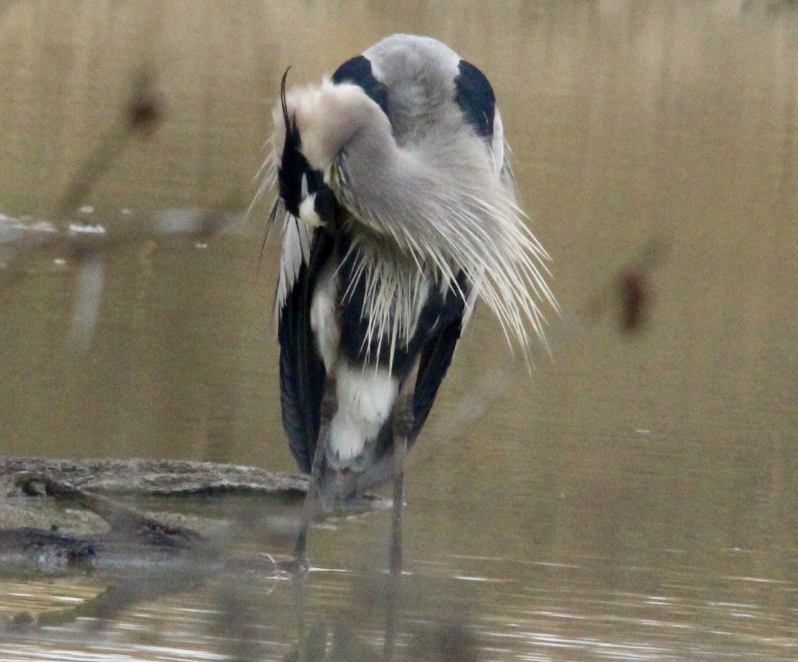 The great blue heron, as you can see a above, was stretching himself into interesting positions all morning. I wondered if he was showing off for the female, but I didn’t see her.