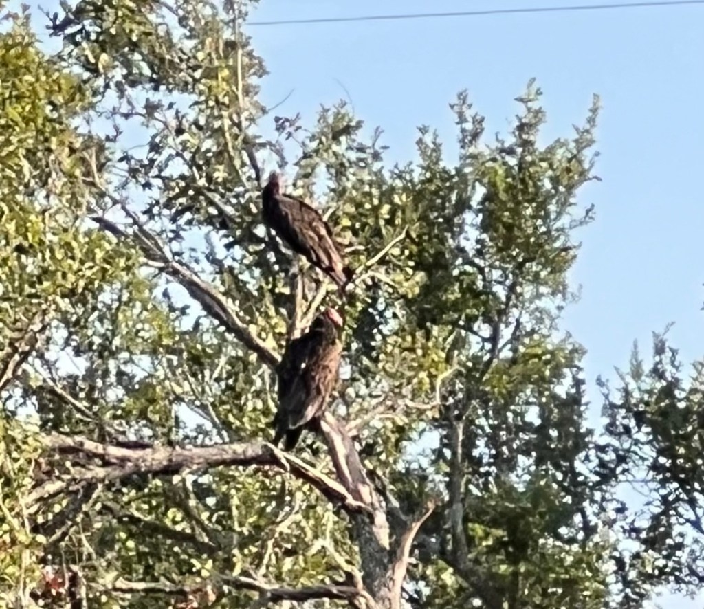 This went on for a few days. Yesterday, there was no buzzing as I walked along the field in my daily bird-watching patrol. Then, late in the afternoon I was over by the trees listening to a Yellow-billed Cuckoo when I heard something that sounded like one of those annoying drones people fly these days. I looked up and didn’t see a drone. I saw a large mass of tiny things moving along at a rapid clip. It was hundreds and hundreds of bees swarming. I guess they were moving on to better pastures. I’m not sure where their hive was before, because I hadn’t heard one in a couple of years. I hope they find a nice new dead tree!