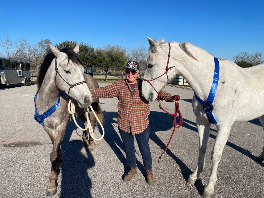 Since we all messed up, no one knew who would win any contested division. I was not last in everything! I was second in Trail! Woo hoo. The other two in my group were my zoom friend Andrew and Lee Ann, whose age added to her horse is over 100. Her horse is one of the few who stayed calm. He is a good rider, too. It was great fun competing with them, so I felt great, all things considered.