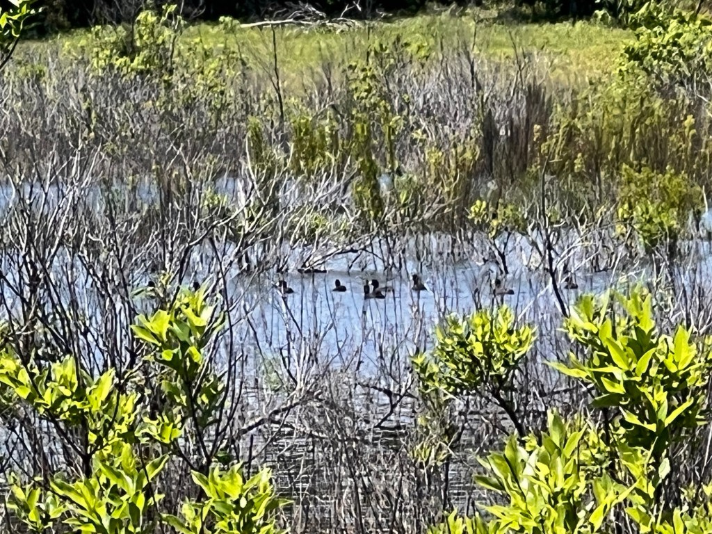 I have to hand it to this area, there are lots of birds, and they love this type of landscape with mixed open and covered parts. I heard a turkey and a peregrine falcon, along with many of my favorite sparrows, and the new-to-me clay-colored sparrow. There were no tanagers (they like the woods back at the campsite), but I was lucky to experience the sounds of multiple painted buntings calling each other and flying around. Magic! Plus the woodpeckers put on a show. Downies were in mating or territorial frenzies.