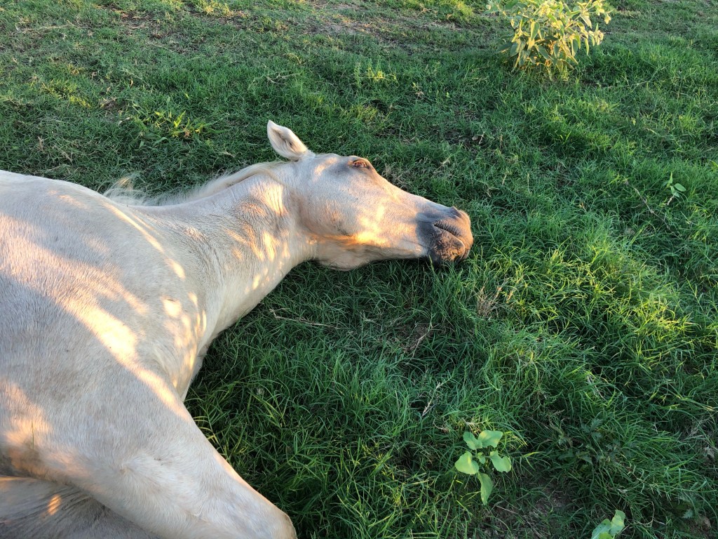 I’m guessing that today you’ll be wanting to find out how our boarder horse, Lakota the elderly fancy palomino, came out after his rough time yesterday. Last we heard, he’d been sweating and heaving, and Spice was standing over him like she was guarding his life. Sara is happy to report that after he stood up and made a big poop, he walked off, normally. She did keep checking through the night.