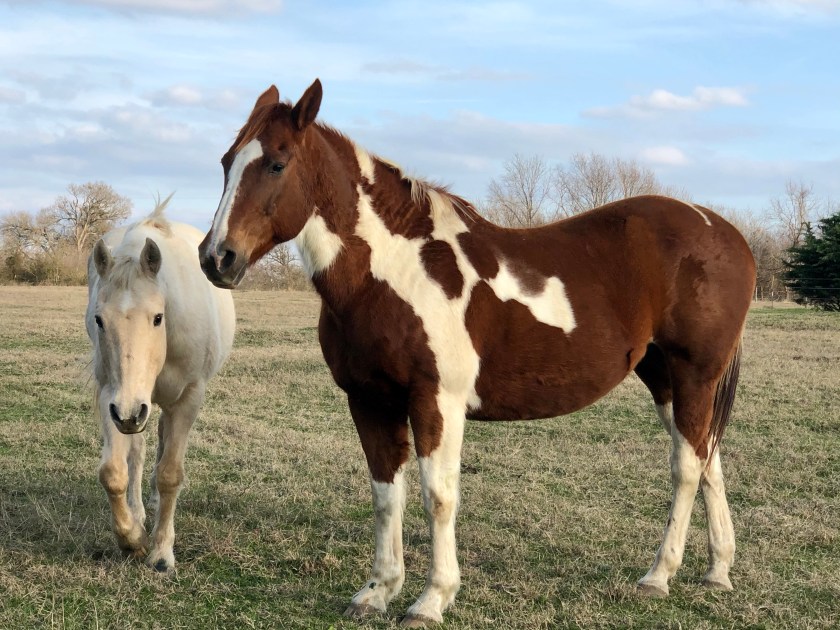 Thanks to me looking up alternative veterinarians, Sara was able to get in touch with Dr. Brinlee, who works with Milam Touch of Love, and while he couldn’t come last night, we are scheduling him to come soon (Apache’s teeth need to be looked at, too). In any case, we were both really relieved to find two horses standing under the trees this morning!