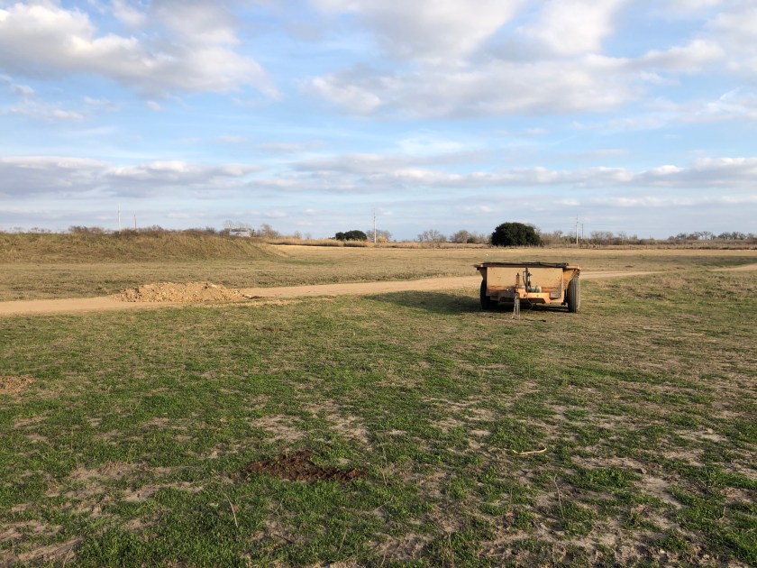 It’s all smooth now. At the rate the Bermuda grass grows, it will be covered in a week to ten days. Notice the feathers on the ground, which I mentioned in my previous post. It’s your fault, Bruce.