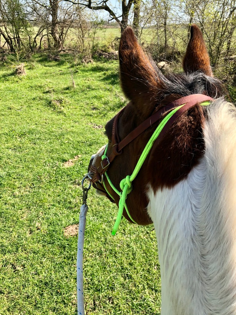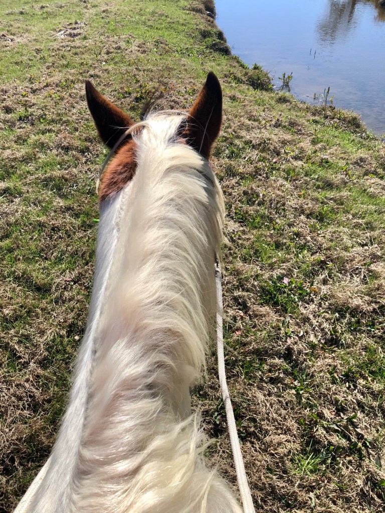 So, I declared we would now try the race again. Brave! That lasted about 20 yards. Apache again was having nothing to do with walking down that path. I spent a rather exhausting 20 minutes where he simply didn’t do a darn thing I asked him to do. There was backing, turning, going sideways, head flinging, ear pinning. WTH?