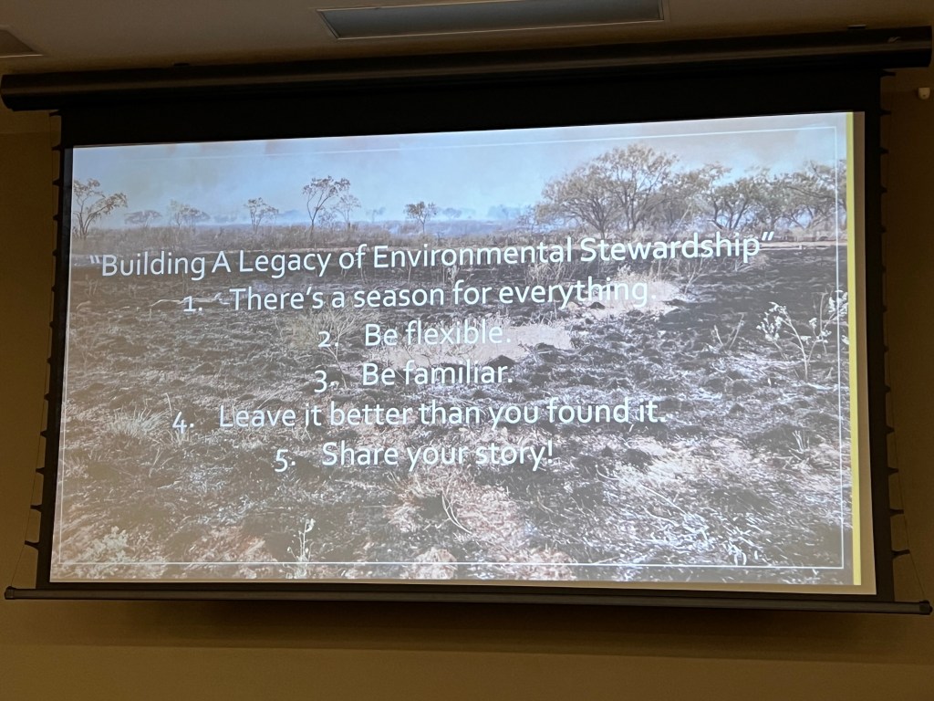 He also talked about doing a controlled burn at the arboretum. That required lots of permission and publicity to keep people calm about the smoke. It worked out well but didn’t quite burn as much of the meadow as they wanted. All learning experiences in an urban woods and prairie!