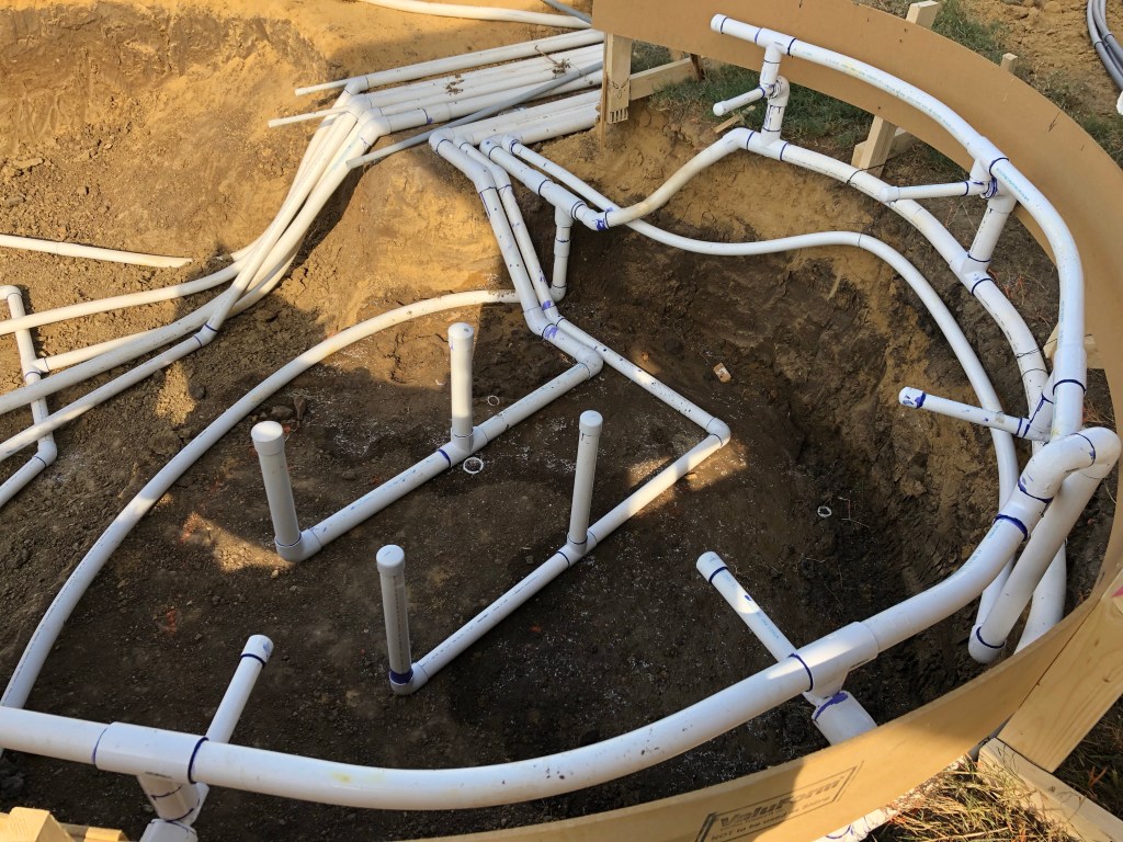 As you can see, today the workers finished all the water lines. There was a lot of use of the bending torch deal! There are so many curves.