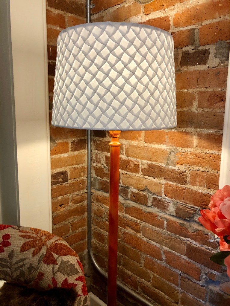 Back to the right side reading nook. I happened to have a floor lamp in my old office that I think came with this building. It was fake gold metal. I’d replaced the lampshade, but the body of the lamp was sad and rusty. I will spare you a “before” photo, because I forgot to take one.