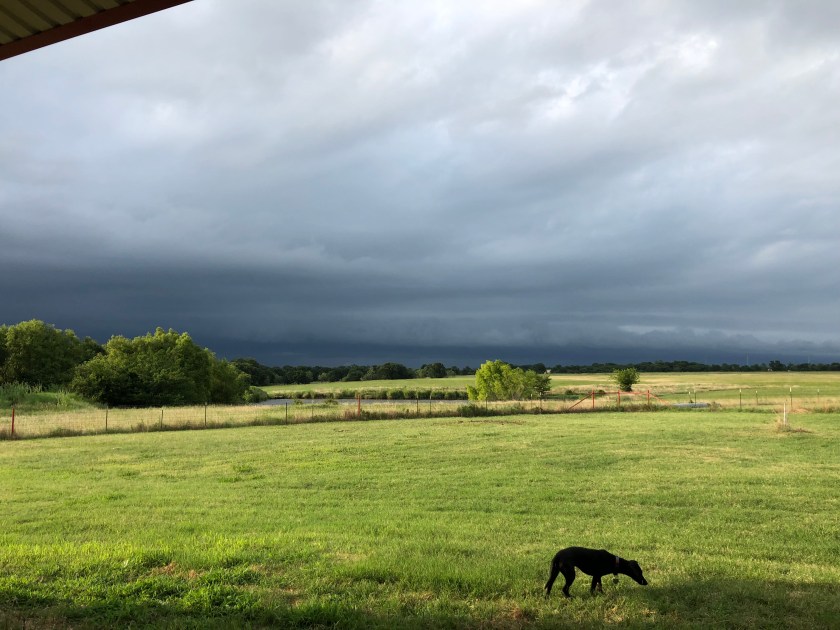 Luckily it was just a severe thunderstorm and not a tornado cell. Lee and I watched it blow through, with sideways rain and spectacular lightning. It turned out the people across the road were doing the same thing on their porch!