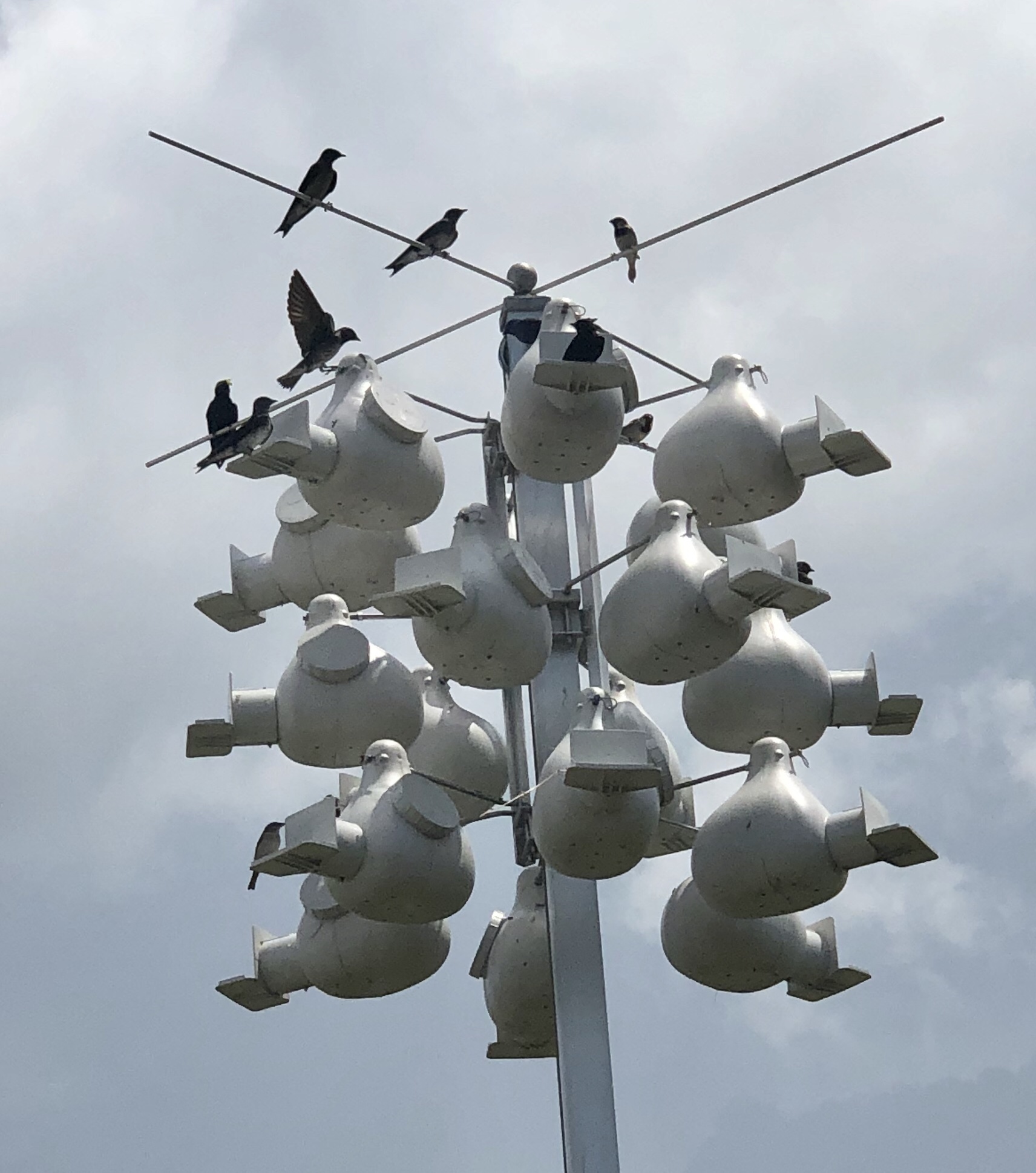 Much of our time was spent in the bird-lovers heaven of watching purple martins going in and out of their high-tech nests. What a pleasure!