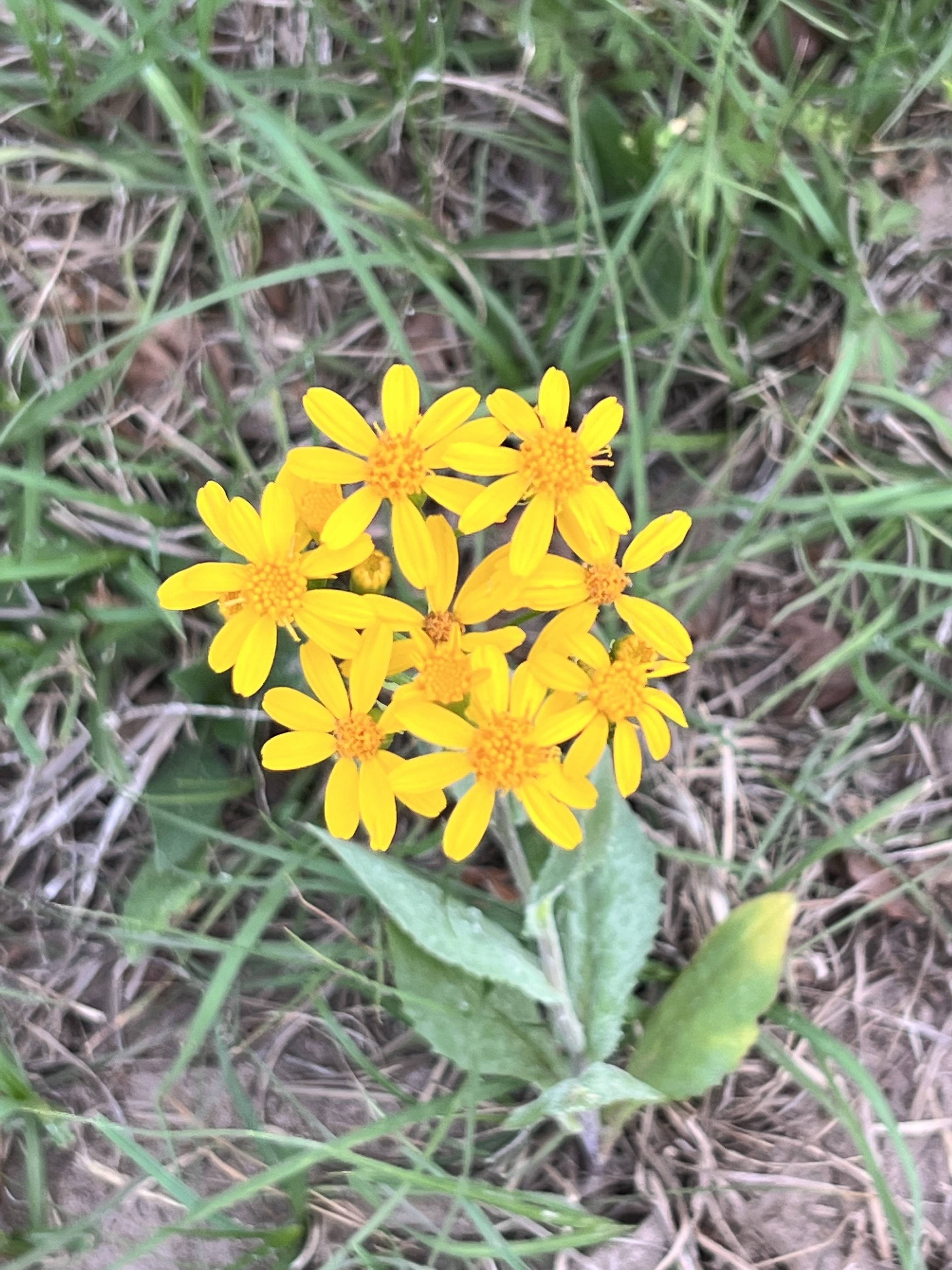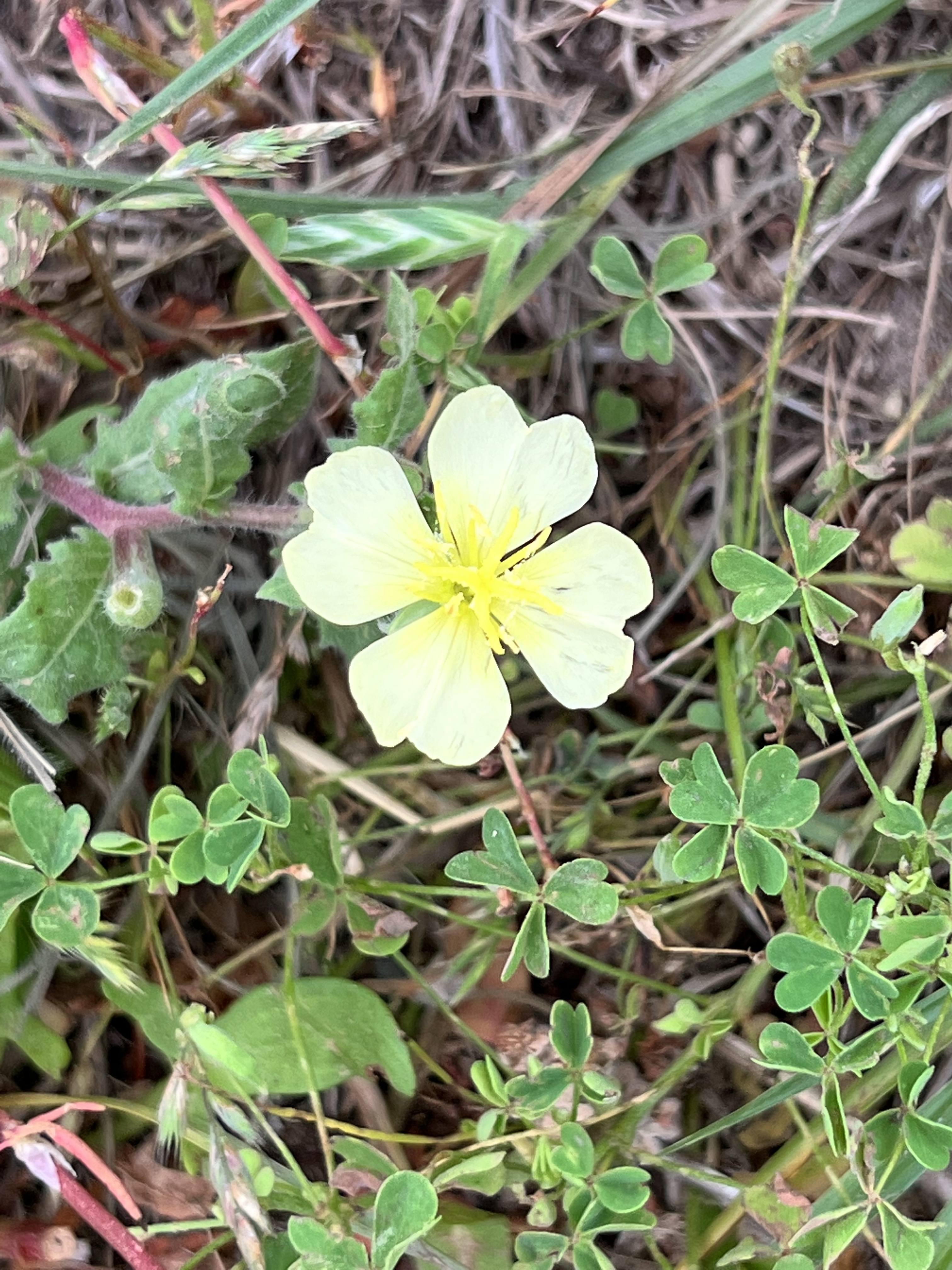 Old plainsman Yaupon hollyScarlet pimpernel Dwarf blue eyed grassCut leaf evening primrose Little quaking grassCow pen daisyFalse dandelion Texas ragwort Dock