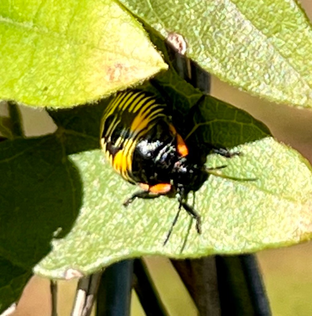 Bug of the day is a young green stink bug. Yep, not green at this stage.