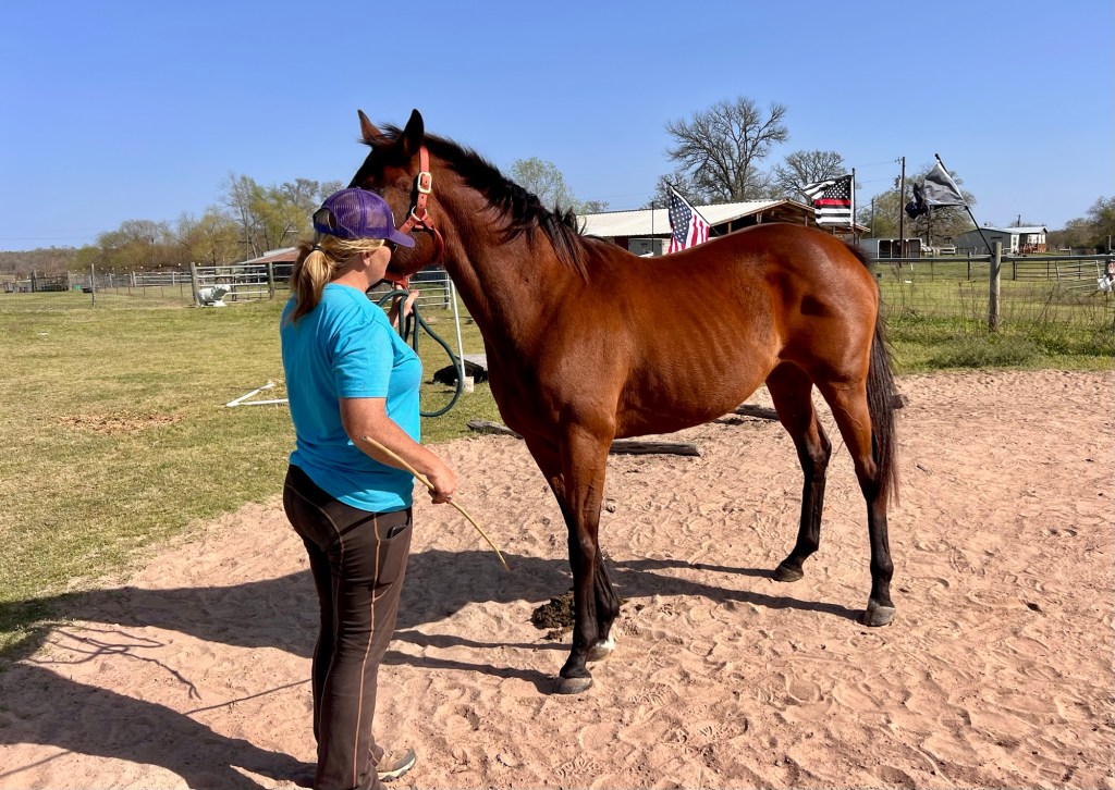 As I’ve learned more about horses and how they interact with humans, it’s become so clear that your intention, your mood, and your demeanor affect them. It’s made a huge difference with me and Apache, and I’ve seen it break down with Drew due to his issues — no amount of good intentions has broken through his pain.
