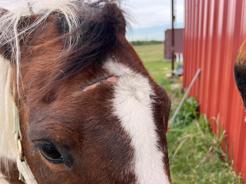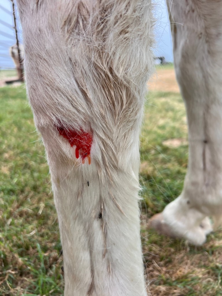 Yesterday’s drama with Big Mabel seems to be resolving. Once Tarrin looked at the video I sent her, she put together what the symptoms meant: Mabel wasn’t eating and was pawing at food because an adverse reaction to a vaccine made her unable to lower her head! Poor horse!