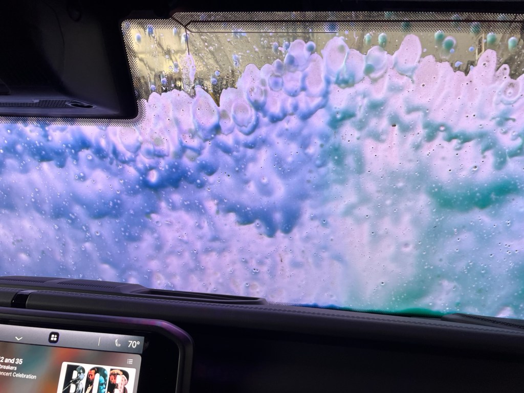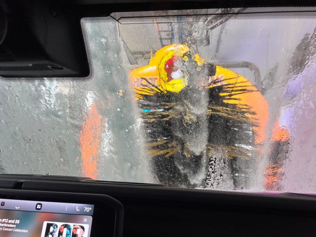 We did do exciting errands this afternoon. I returned my underperforming Viasat satellite receiver and got more horse food. The reward was going through the fancy new Buc-ees car wash. It has that dang beaver all over it.