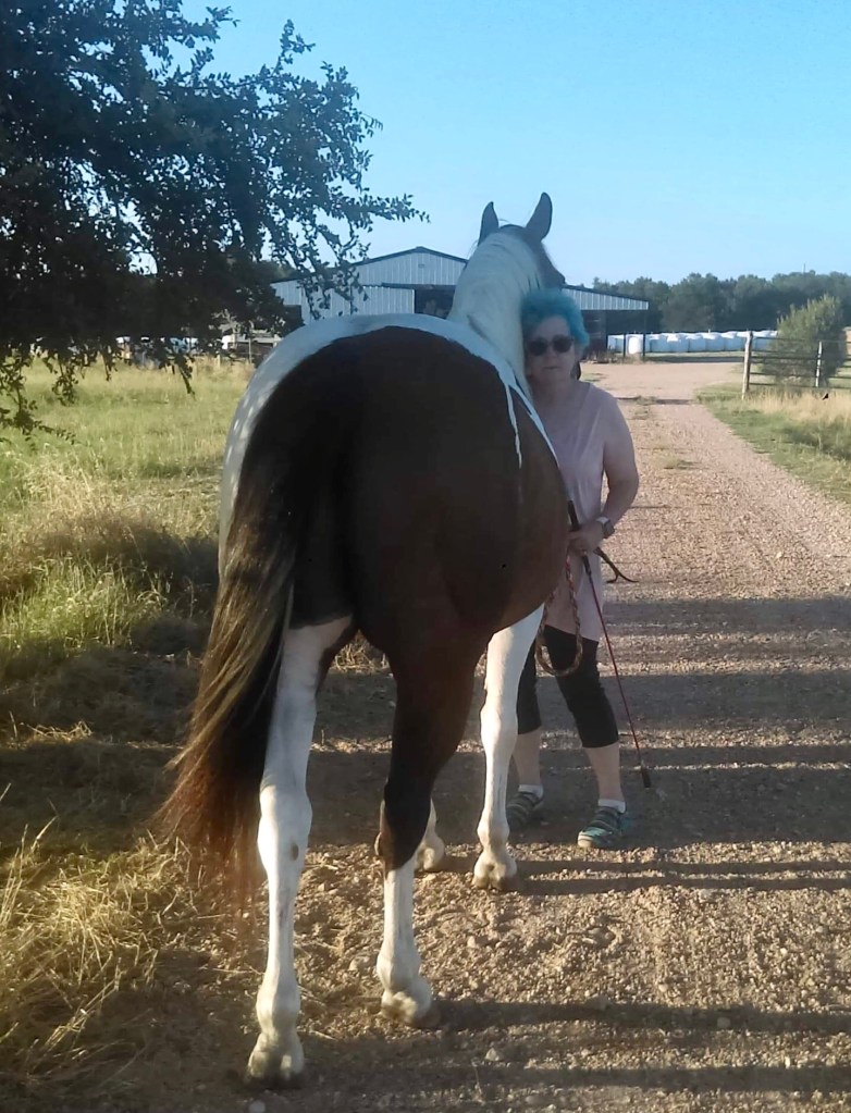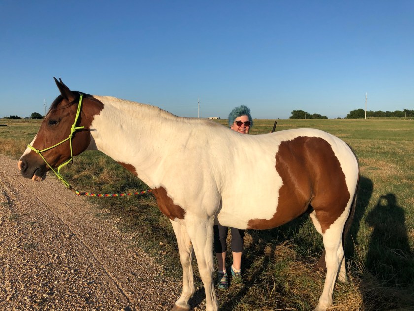 We chatted about what she’d observed and her ideas for improvement. She told me Apache seems to think he’s getting his way when I let him turn all the way around. He’s thinking he got to head home. So, I need to do something else other than the circles I’d been doing.