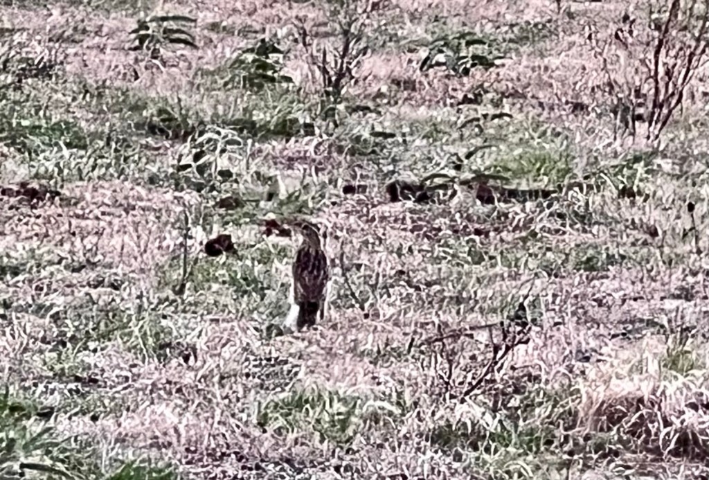 It’s an American pipit. Or it’s a Sprague’s pipit. They aren’t even related to sparrows, which is obvious if you look at their bills. They have the sharp bill of an insectivore. I know that because Merlin heard them calling.