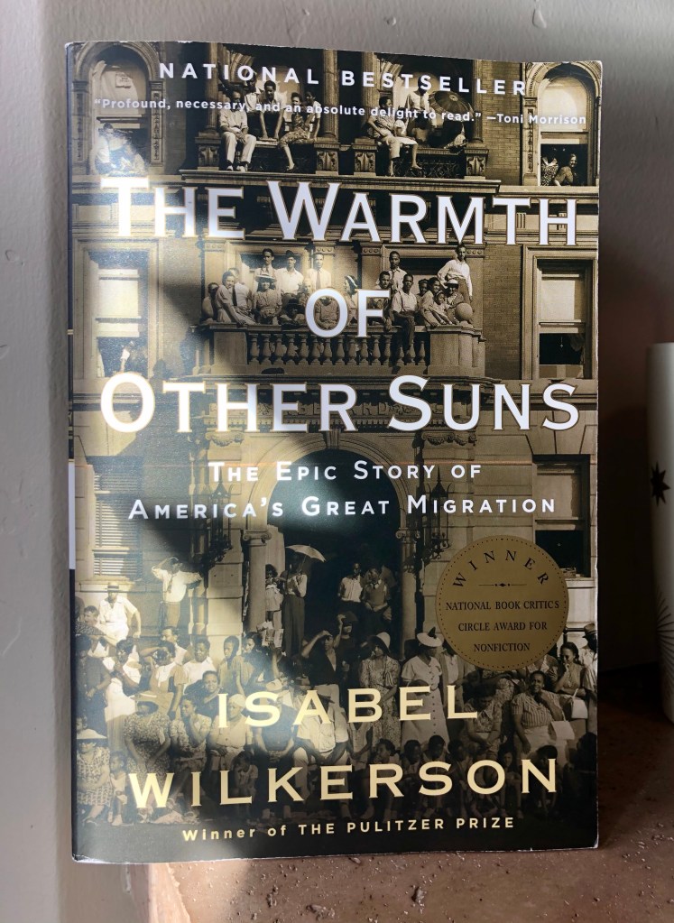 You’d think I would have finished a couple of books by now, since I’ve been mostly alone in Utah for two weeks. But, there has been knitting, and that does take away from reading time. And the book I have been reading is over 600 pages. But, I finished The Warmth of Other Suns: The Epic Story of America’s Great Migration today! It’s the 2010 first book by Isabel Wilkerson, who wrote Caste, the book that has moved me so much.