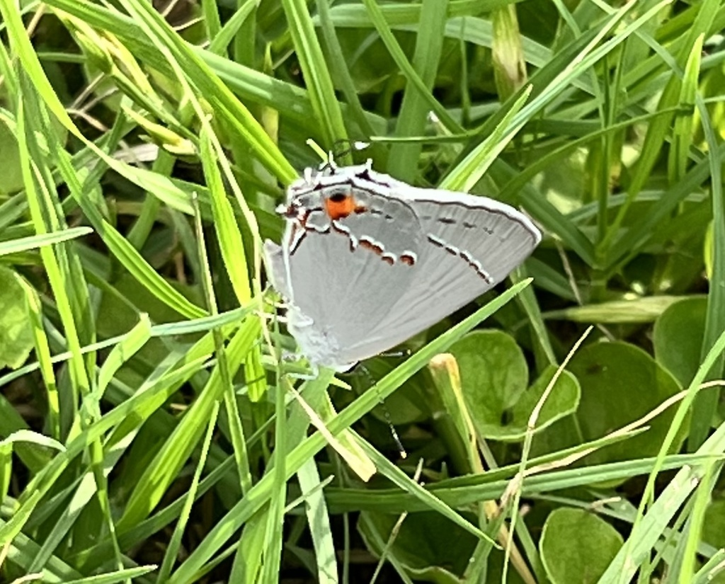 I am trying to figure out what butterflies I see earlier in the year. Gray Hairstreak (Strymon melinus) is one I know I see in spring. Even this one peaks in the fall, though. It’s tiny, but holds still enough that I can get photos. Thanks!