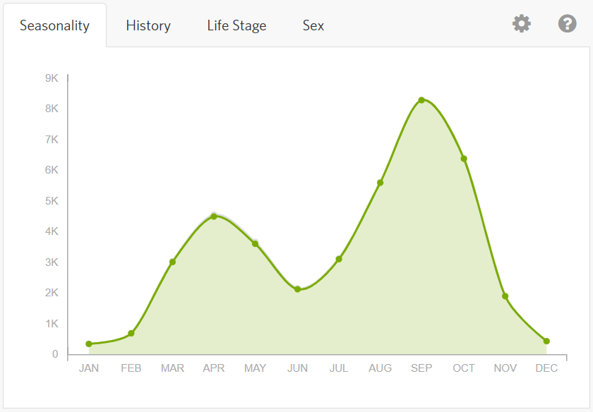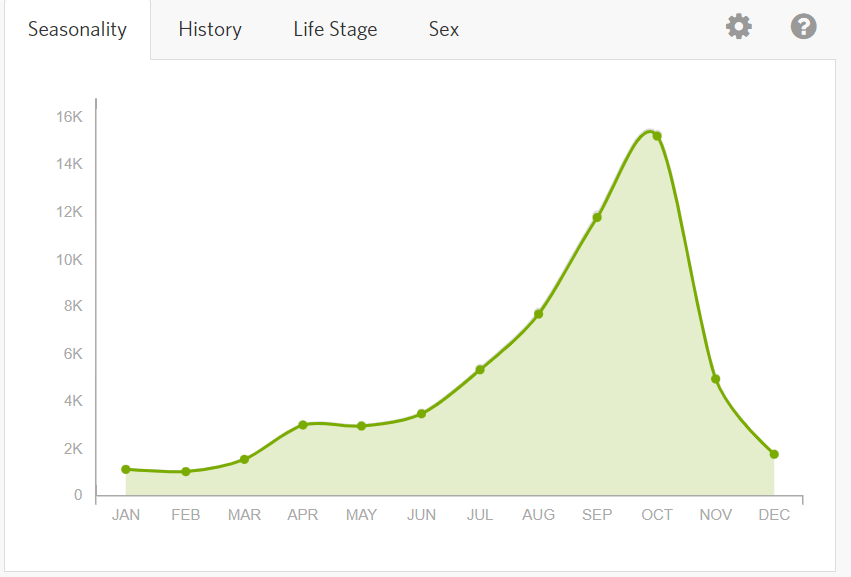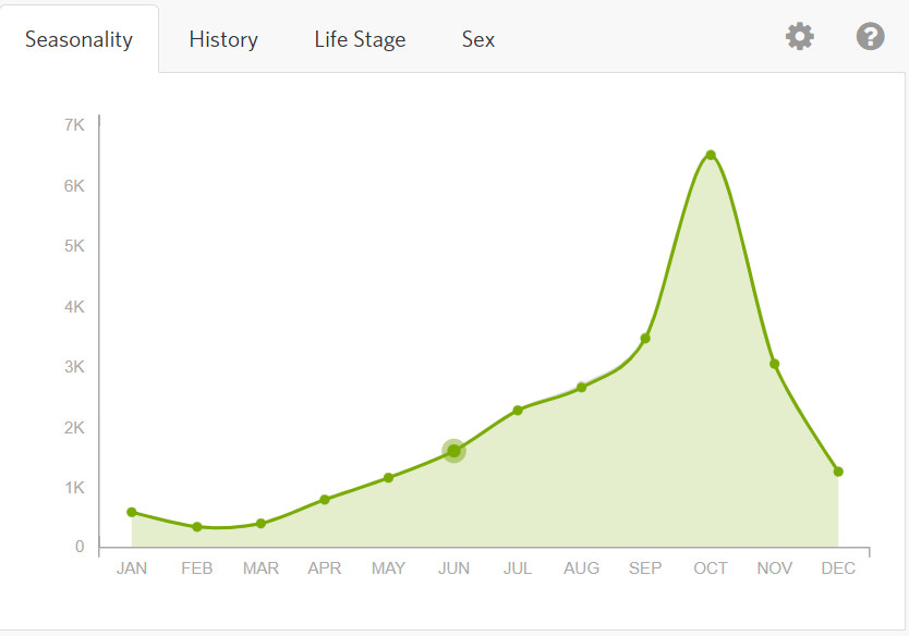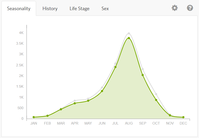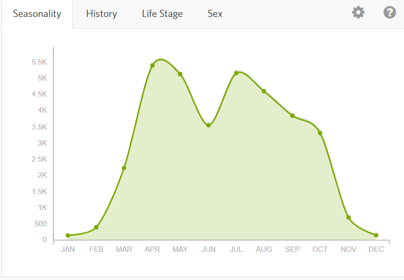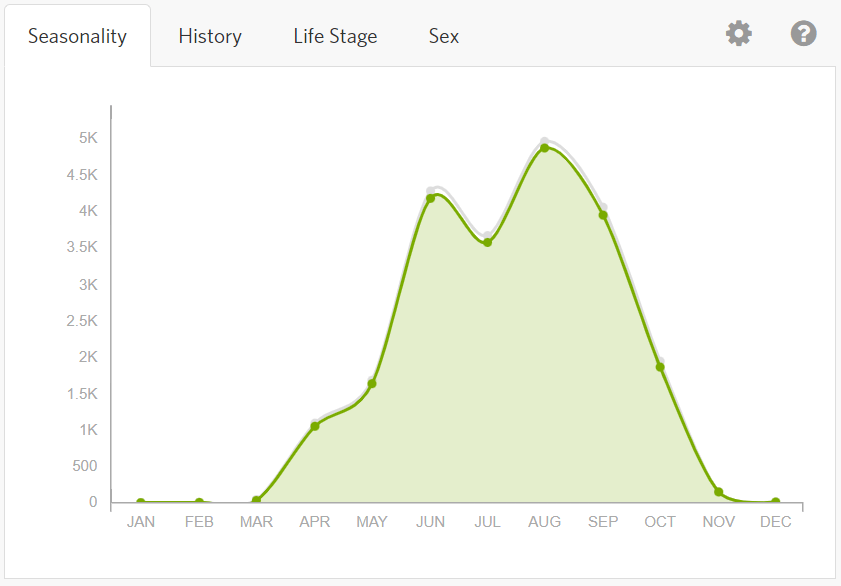 Painted Lady (Vanessa cardui) is another one with two peaks. One thing I’m noticing, though, is that even the ones with a spring peak have a larger one in the autumn. So, that explains something that Louise was asking about: many butterflies seem to be autumnal!