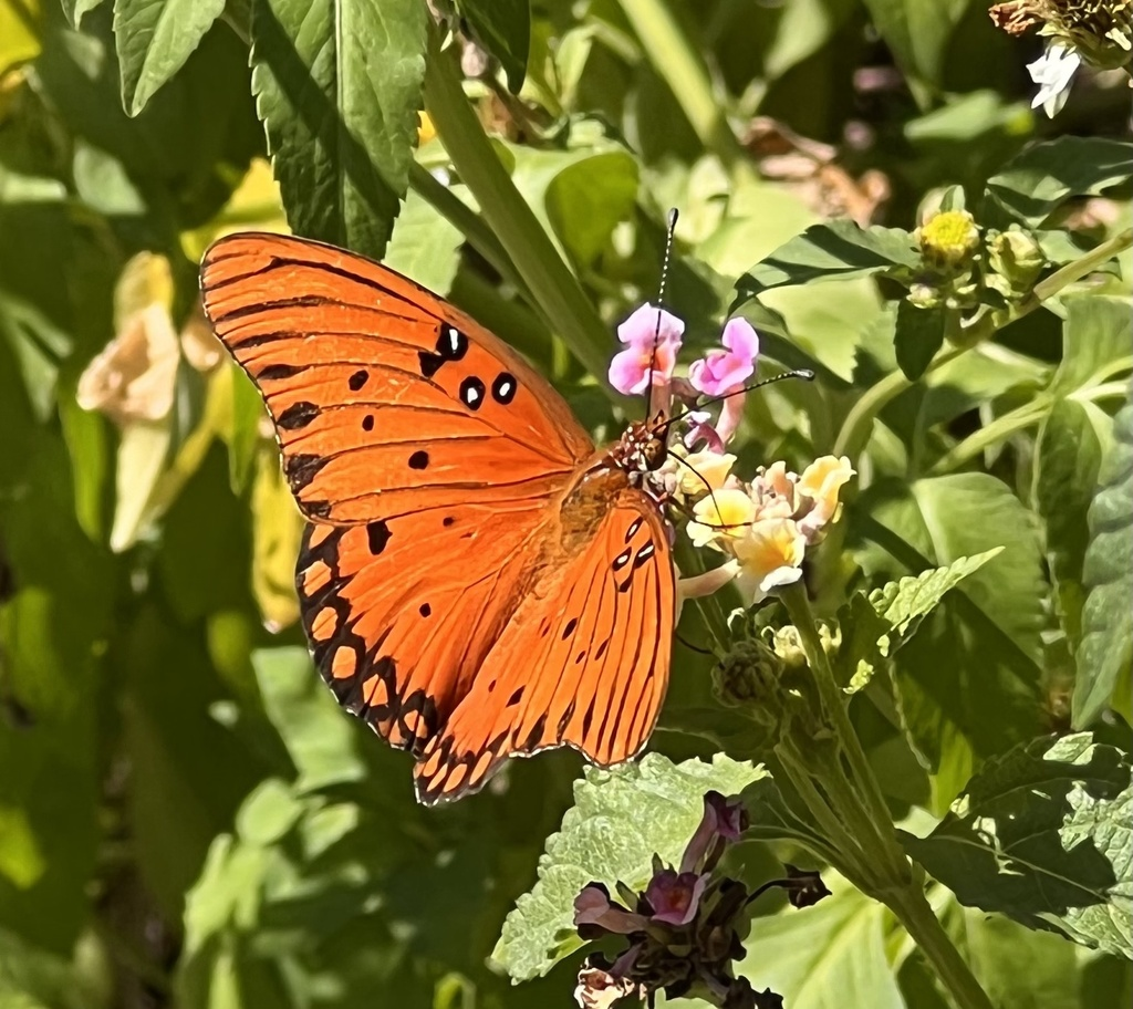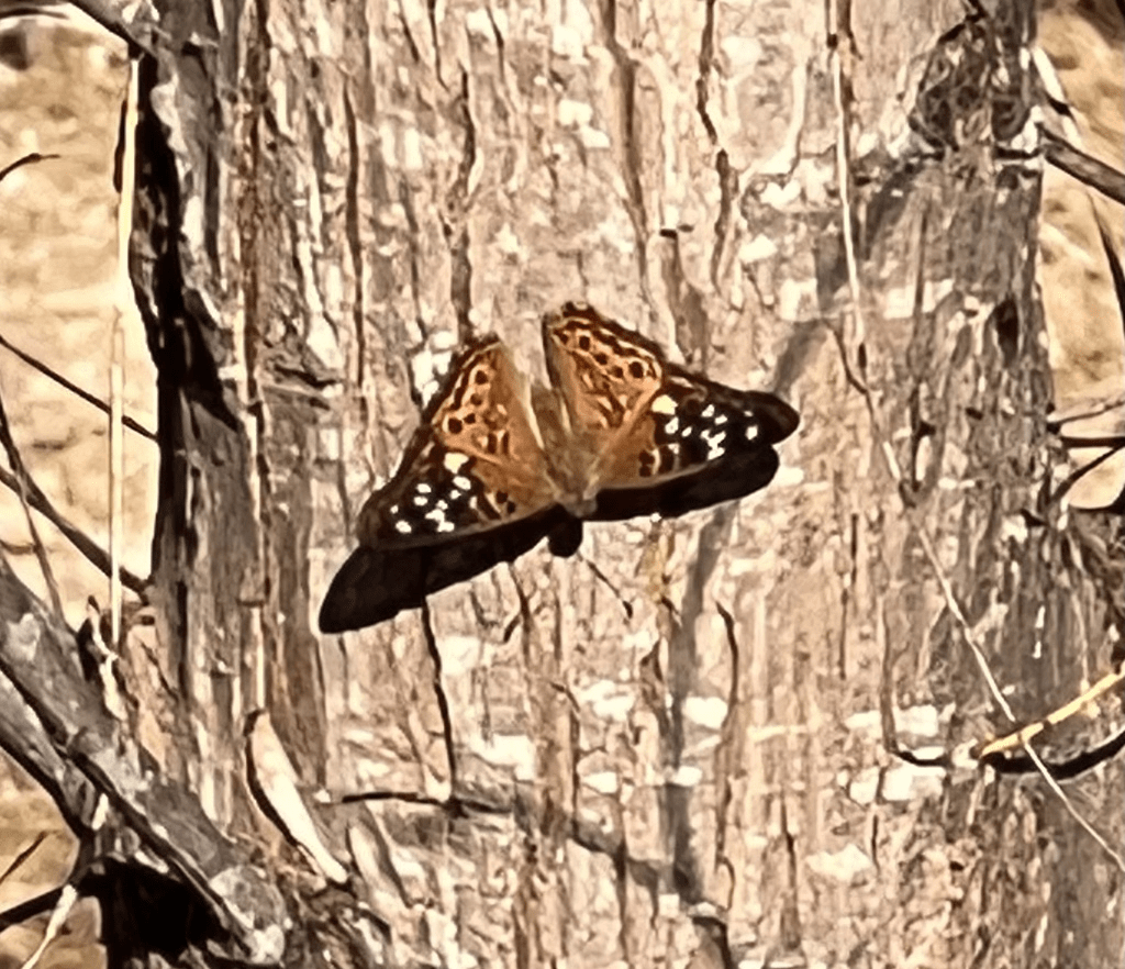 This is a weird butterfly. It’s rarely seen visiting flowers (I see it on trees, duh). And it doesn’t pollinate the trees: