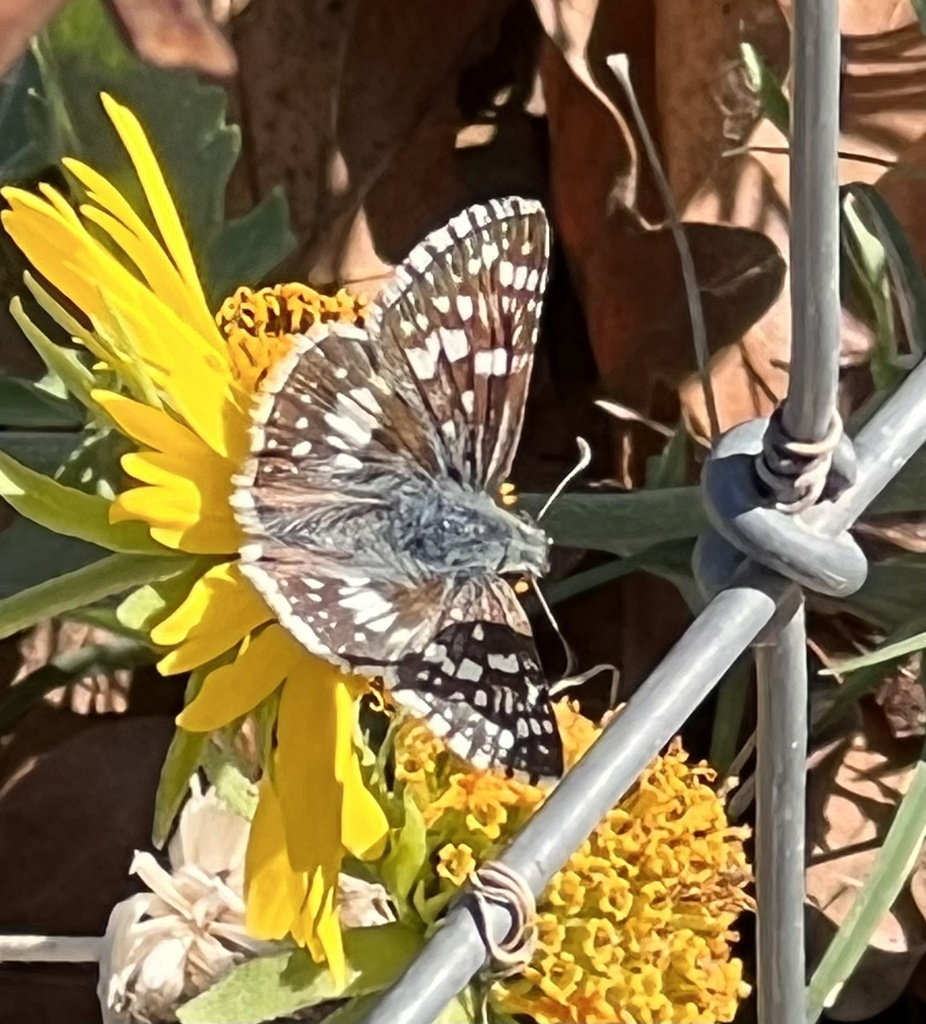 Common Checkered-Skipper (Burnsius communis) is one I can’t get verified, but the ones I see sure look like the ones in the picture. It doesn’t seem to have been studied as much as many of the others, though it’s really pretty with its blue body and lacy pattern on the wings. And yep, it’s another one that is seen mostly in the autumn.
