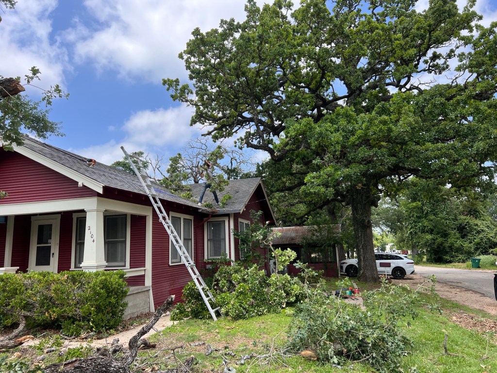 Progress When I got scaredTree mostly down! Keeping from hitting the porch