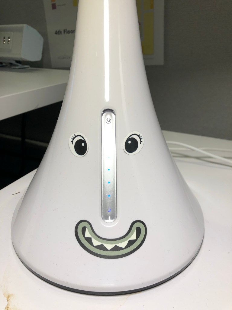 This smiling face gets left at the office, since it’s on my monitor support beam.