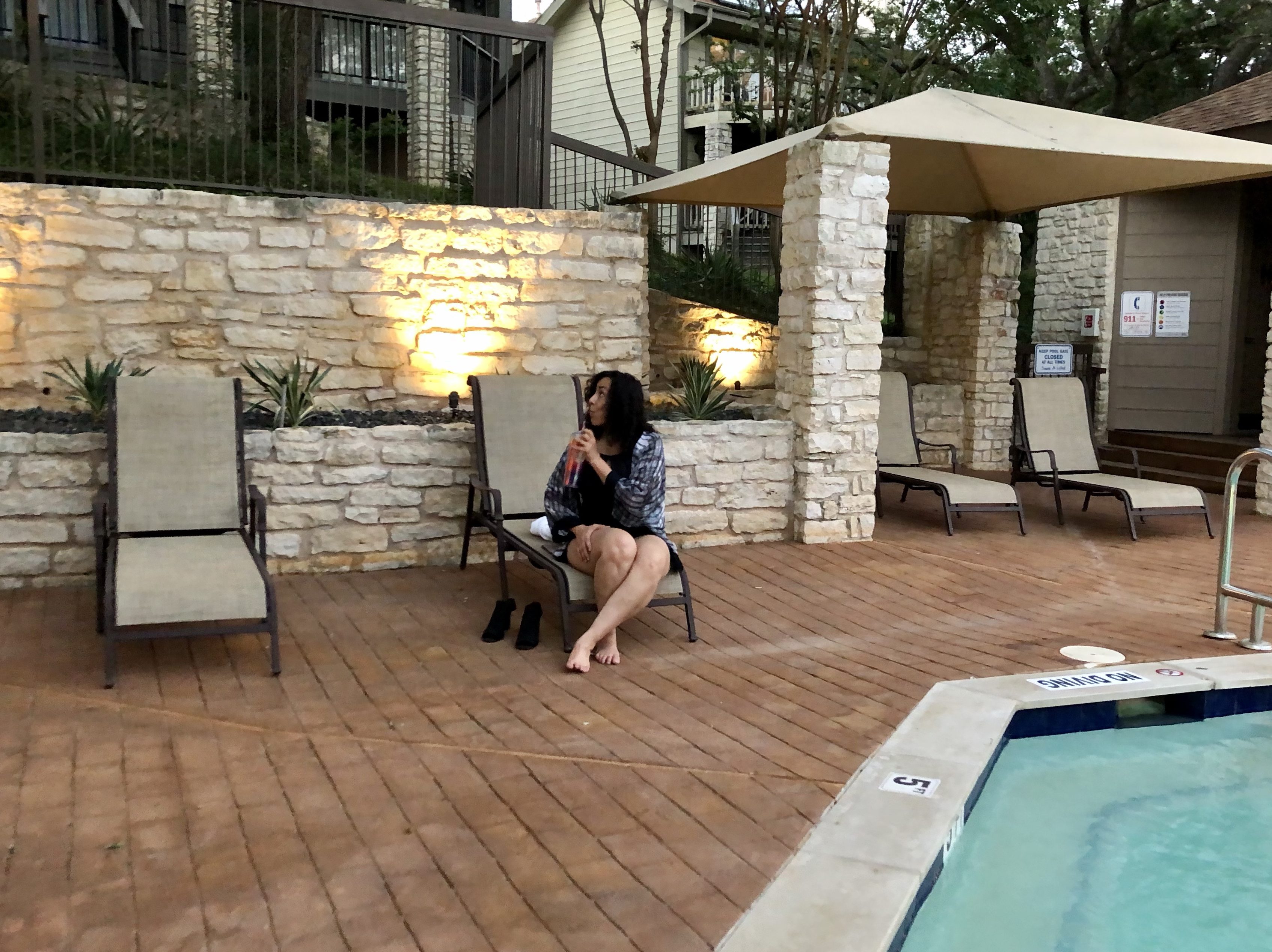 Apparently, we do have a pool, and it’s right behind the Bobcat Lair house in Austin. I’ve lived here part time for four years and owned the house for six, but I’d never really seen it, just glimpsed it through trees.