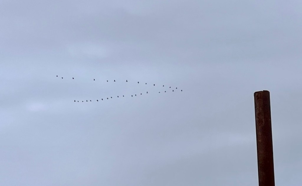I got to enjoy the cranes flying by. These must be stragglers. Never a bad day if you see them! And I’m hearing all the winter birds in the woods. That’s the best part of winter!