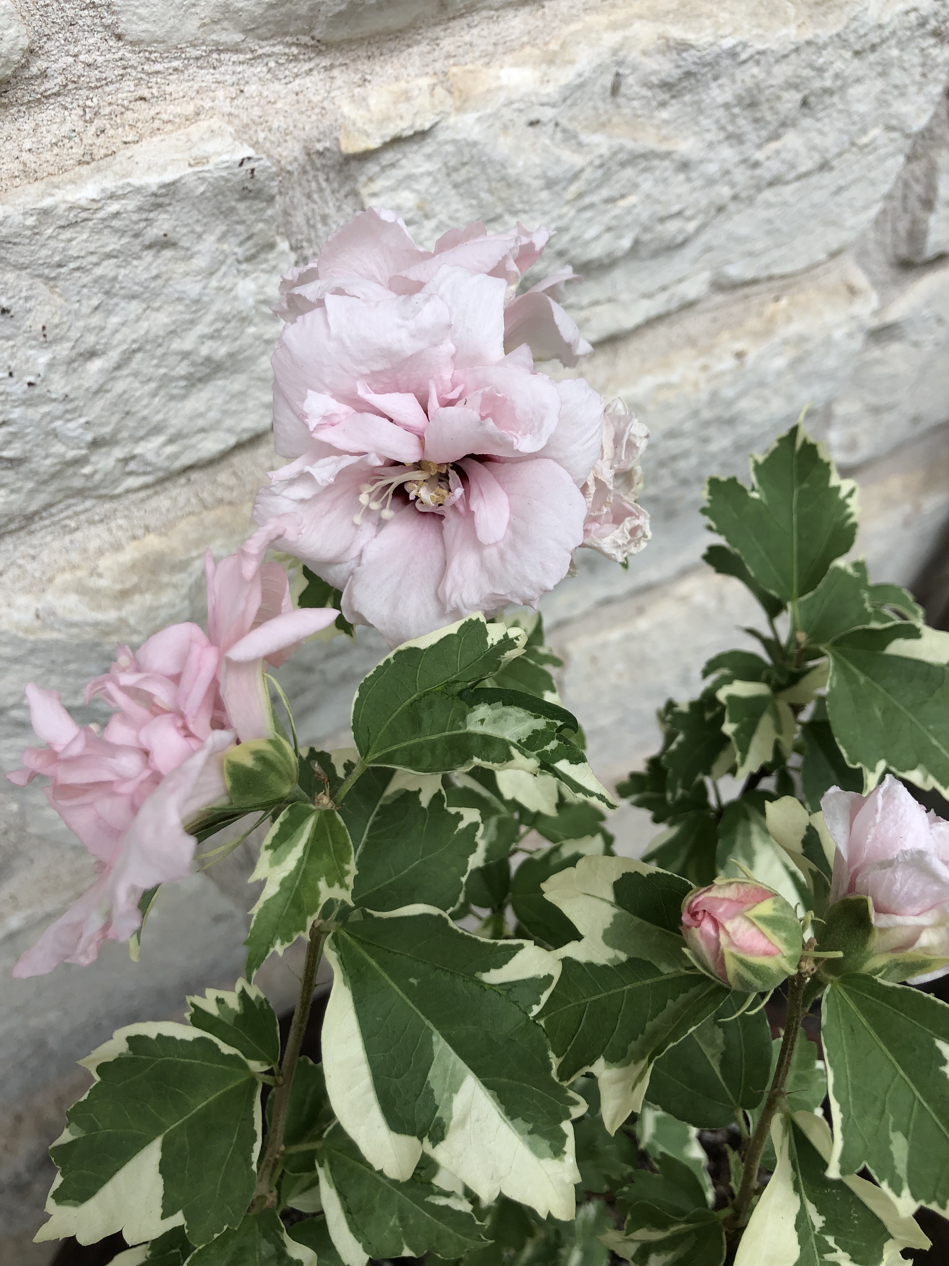 I was really happy to see the Althea bush blossoming. It’s a beautiful plant. I love bicolor leaves, and the pink flowers have been great. It looks good all year.