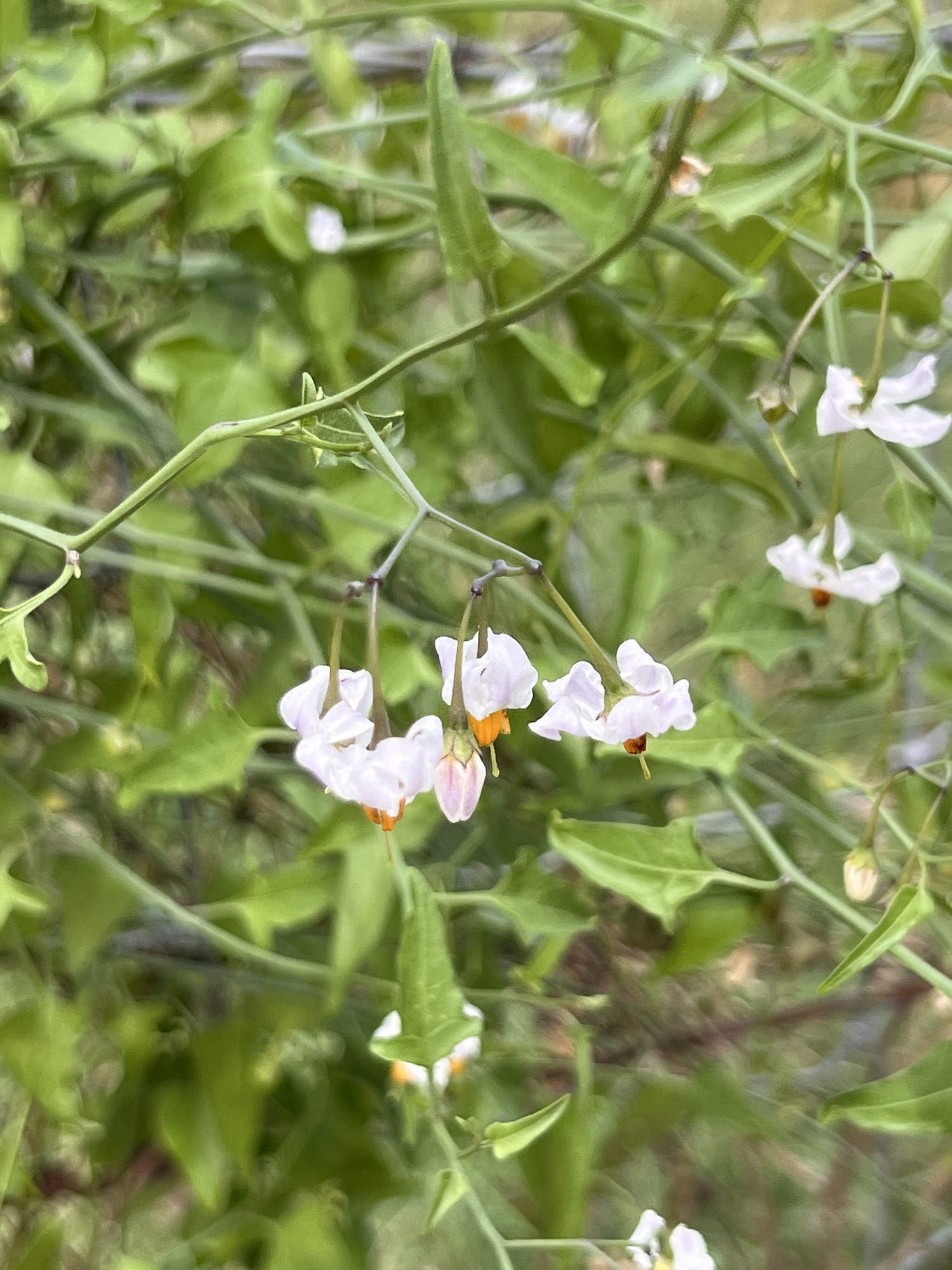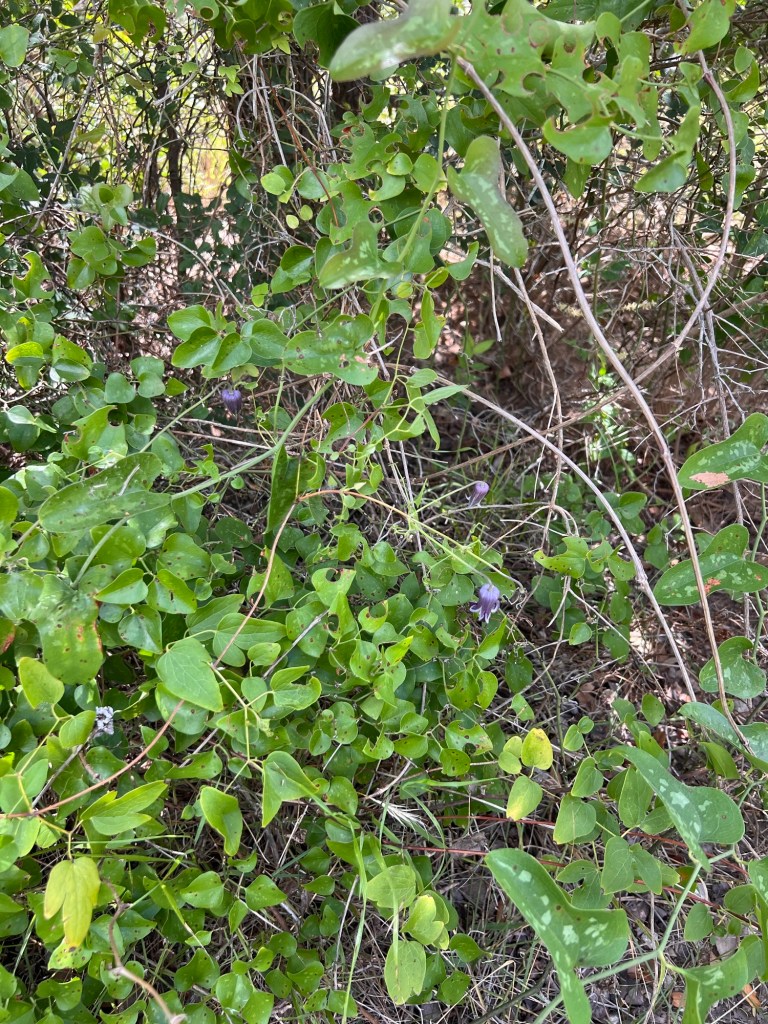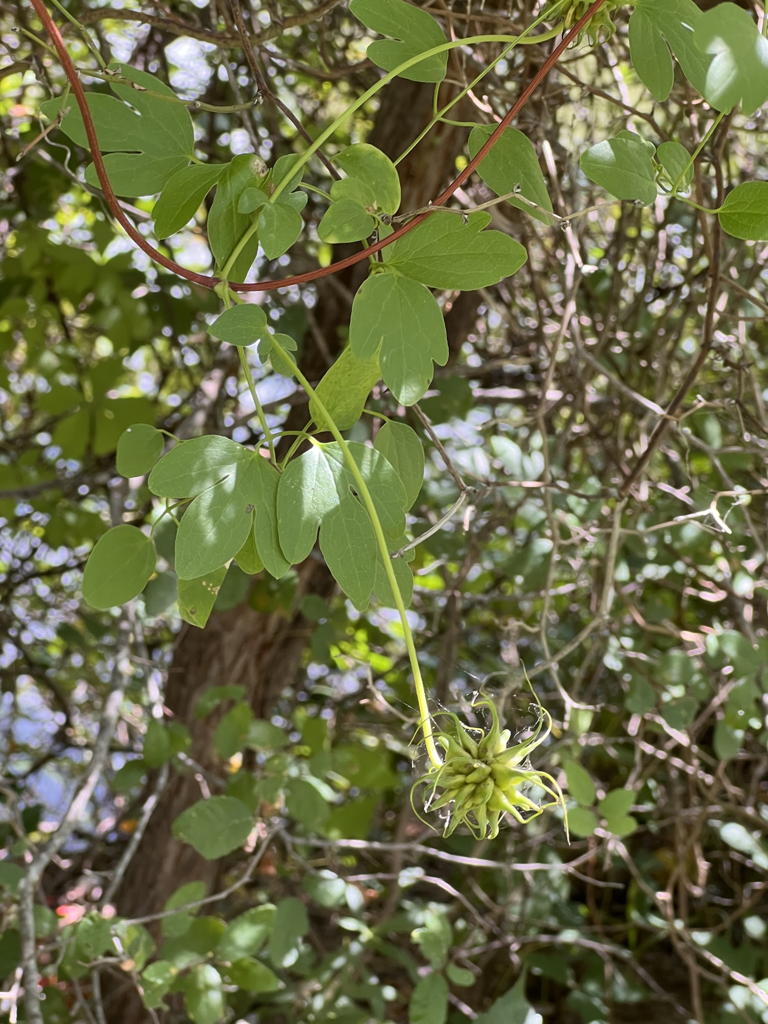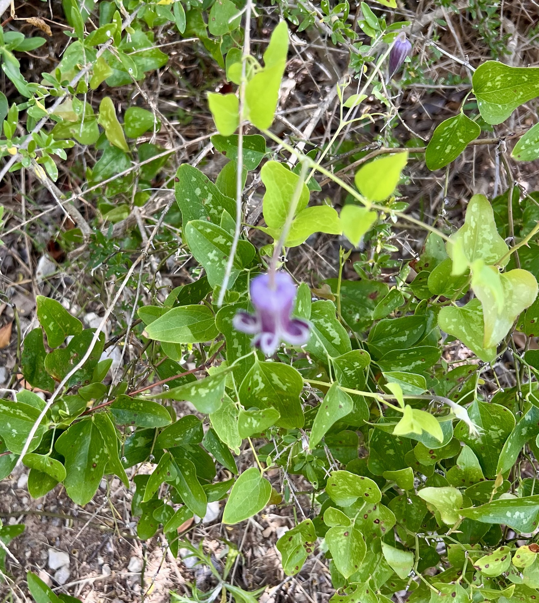 What a gorgeous trail it was, winding along the water. While enjoying the birds, I realized my two favorite vines were everywhere, Pitcher’s leather flower and pearl milkweed. I was excited.