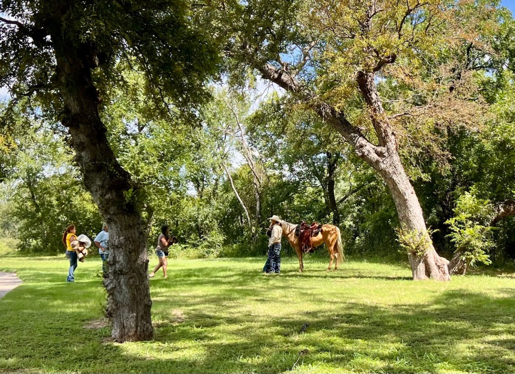 I enjoyed walking the paths, other than when disc golf players yelled at me. The other interesting sight was a family who brought a confused but patient palomino horse to the park and posed their children with it. Everyone had cowboy attire, the fancy kind.
