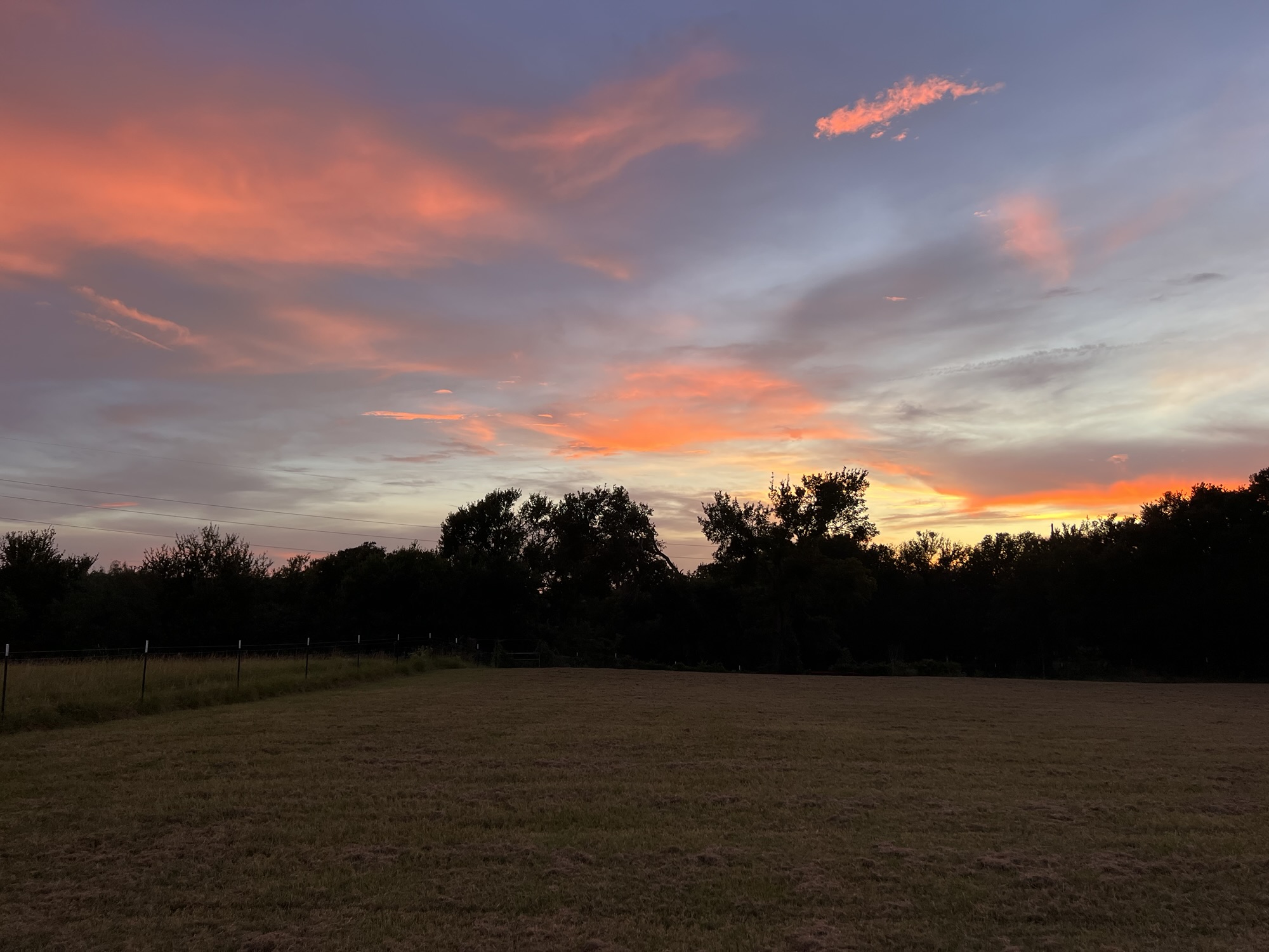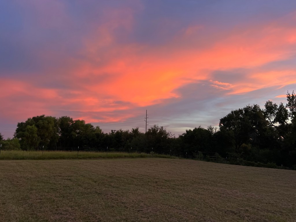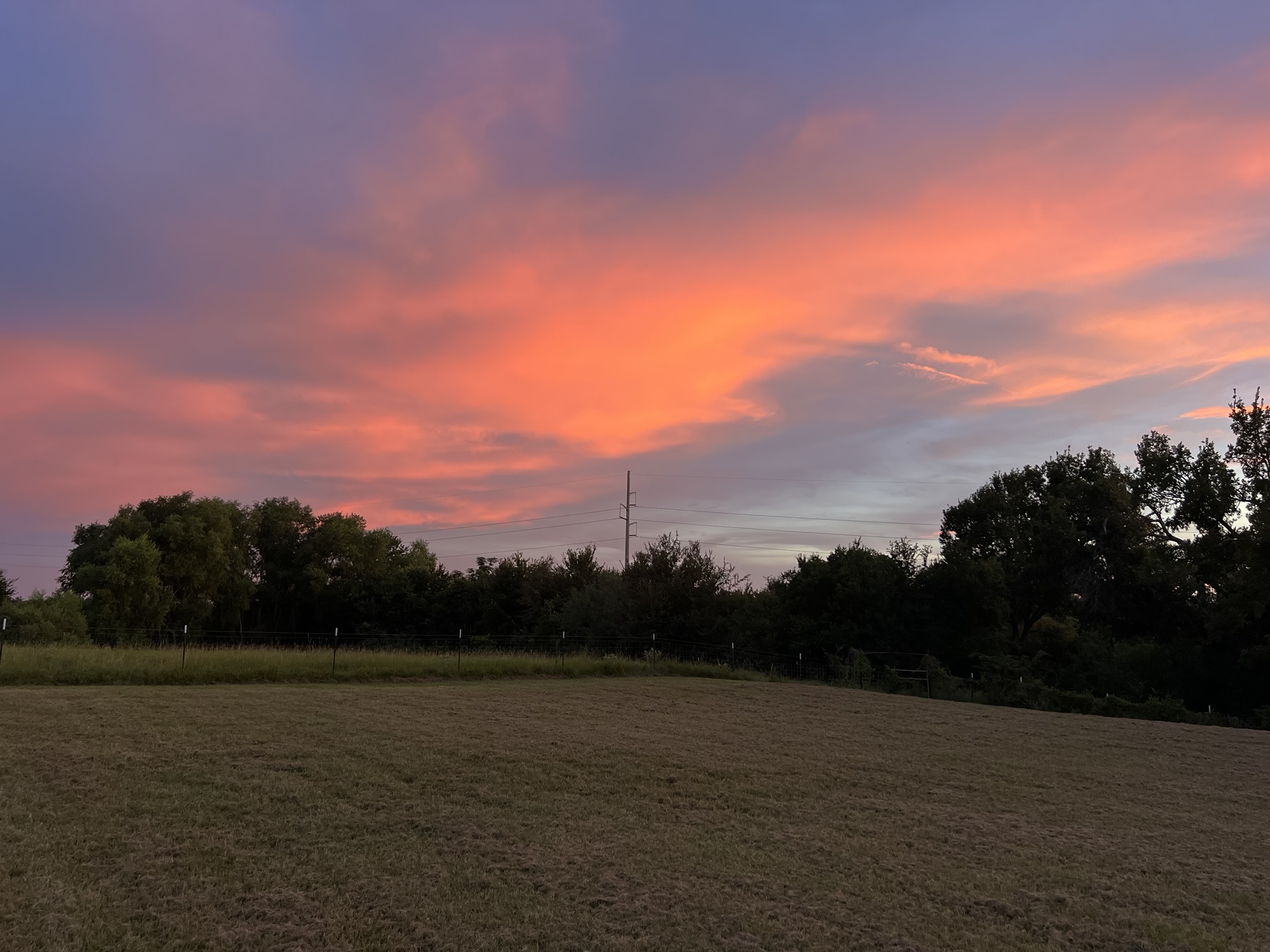 We had a brief but intense storm with lightning while I was feeding horses, which produced thunder loud enough to scare both humans and equines. It did lead to a beautiful sunset, so I’ll share those!