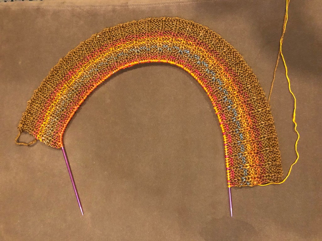 Maybe when the temperature blanket is done I’ll make a large one like Lily Chin did. Hers was long, and folded over at each edge to make holes you can stick your hands in while slipping the main part under a casserole. It was cool. Also, turning it under hides any ugly edges, heh heh.