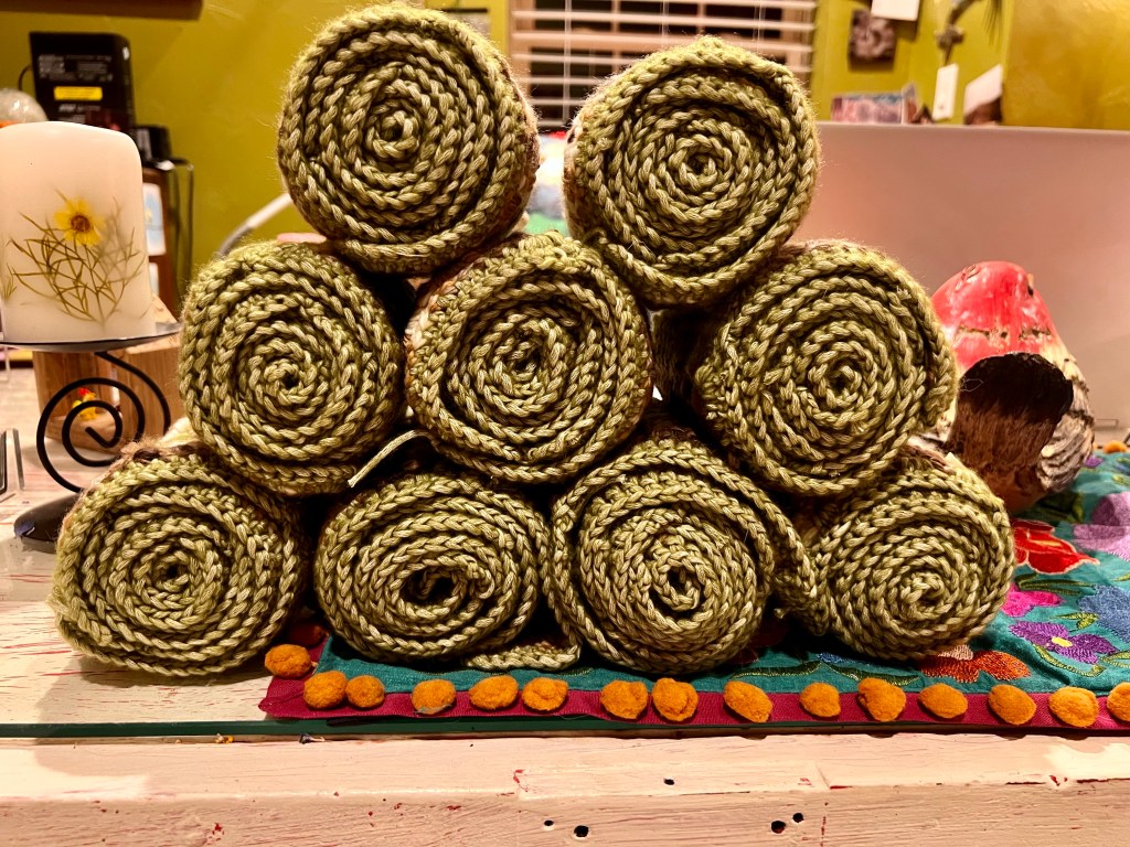 I liked the looks of it and the idea of making something sturdy out of wool that would be oven safe and protect surfaces if you set something on it. Sounded like a good gift idea, from someone who isn’t buying gifts this year.
