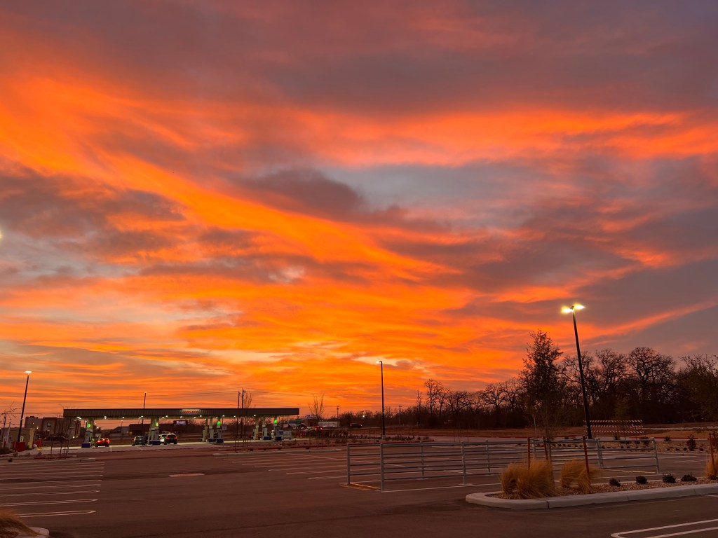 Moody morning Weaving progressRode Drew outside the round pen for the first time. Amazing sunset from College Station Costco parking lot. Dallas Cowboys manicure.